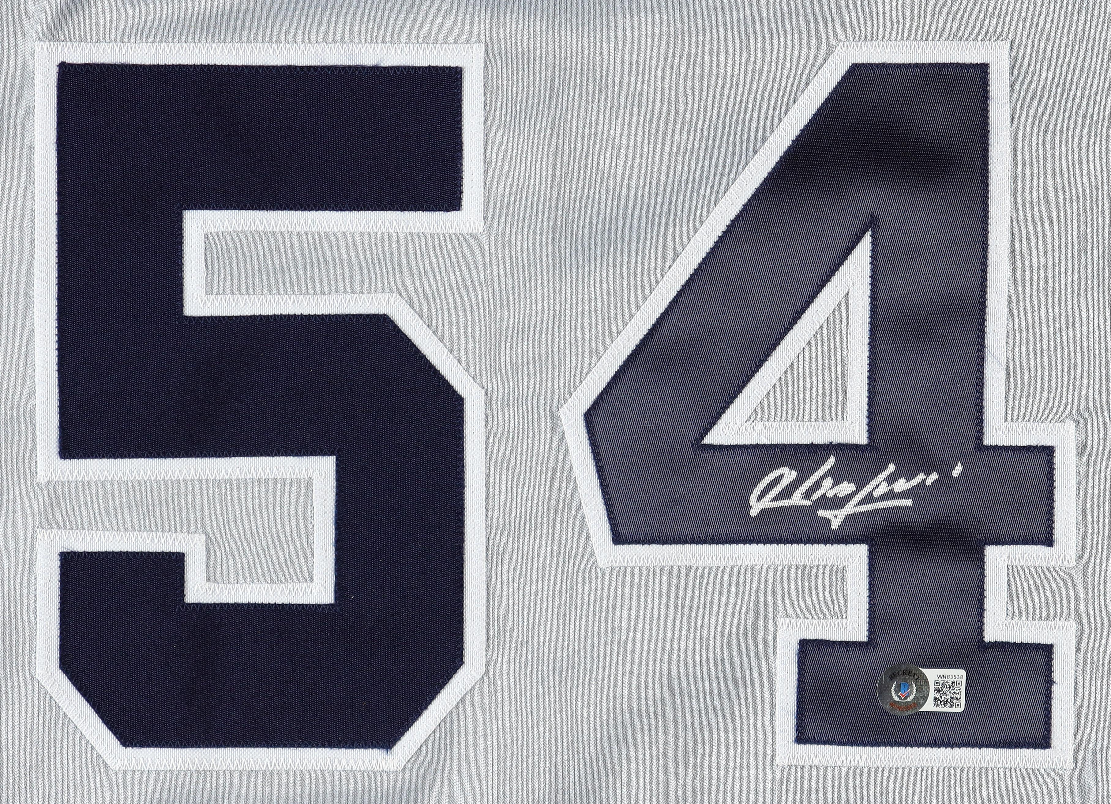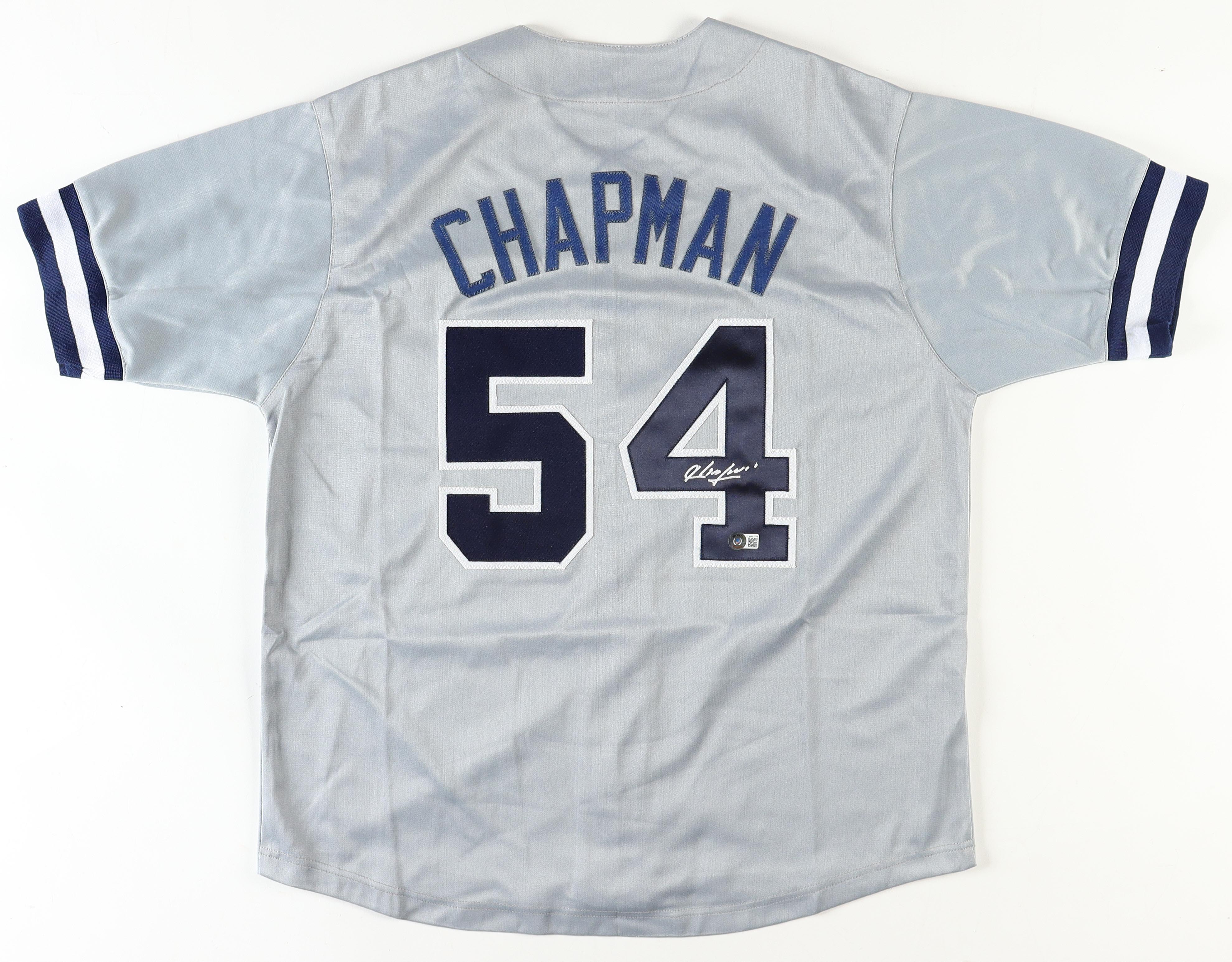 Custom jersey with everything sewn on, size XL. Hand-signed by Aroldis Chapman.