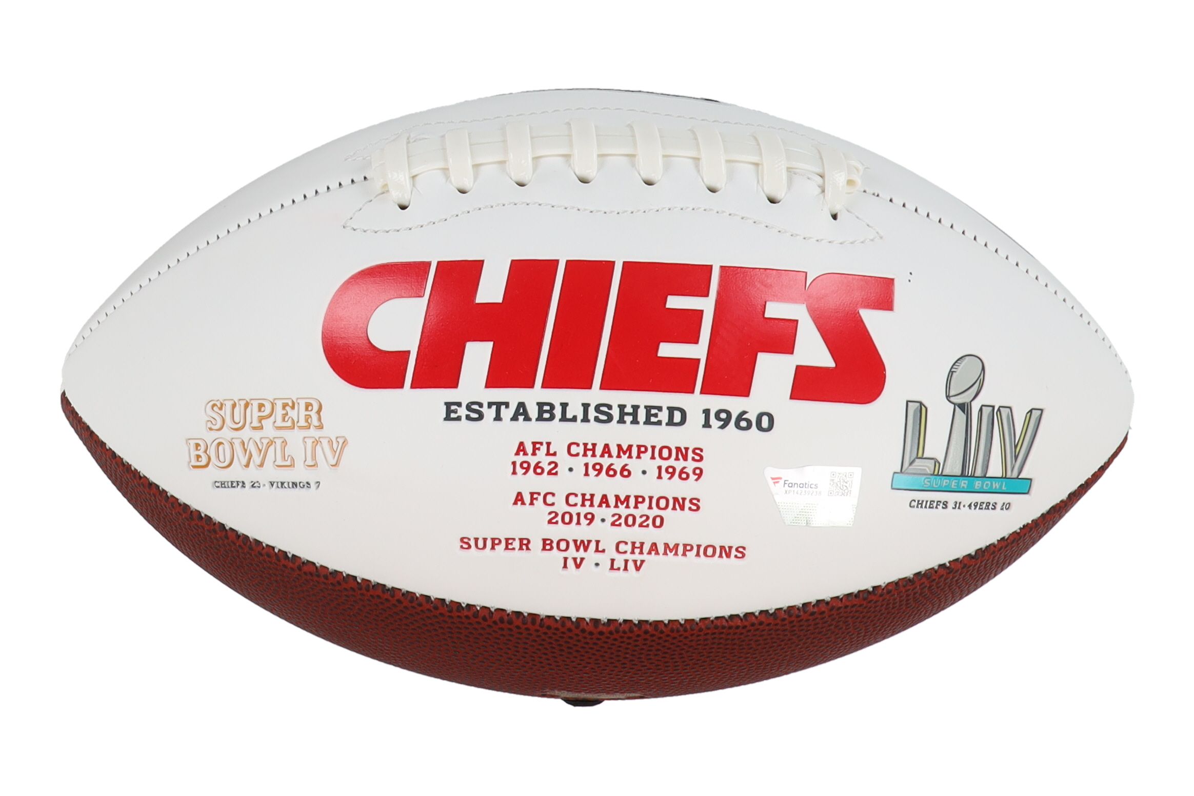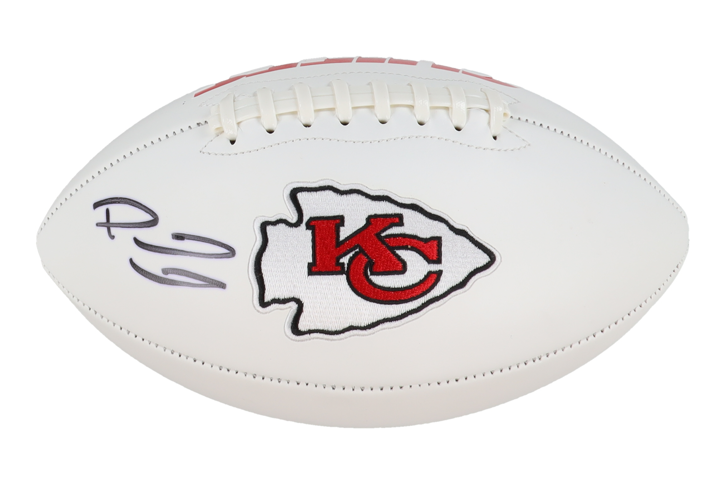 Kansas City Chiefs logo football has been hand-signed by Patrick Mahomes.