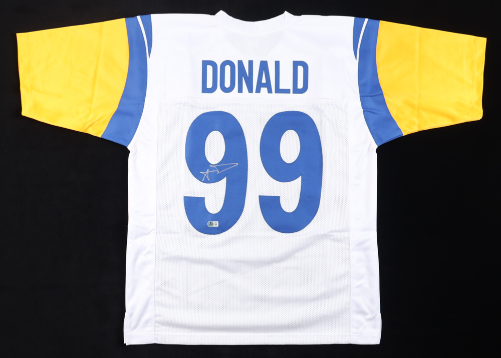 Custom jersey with everything sewn on, size XL. Has been hand-signed by Aaron Donald.