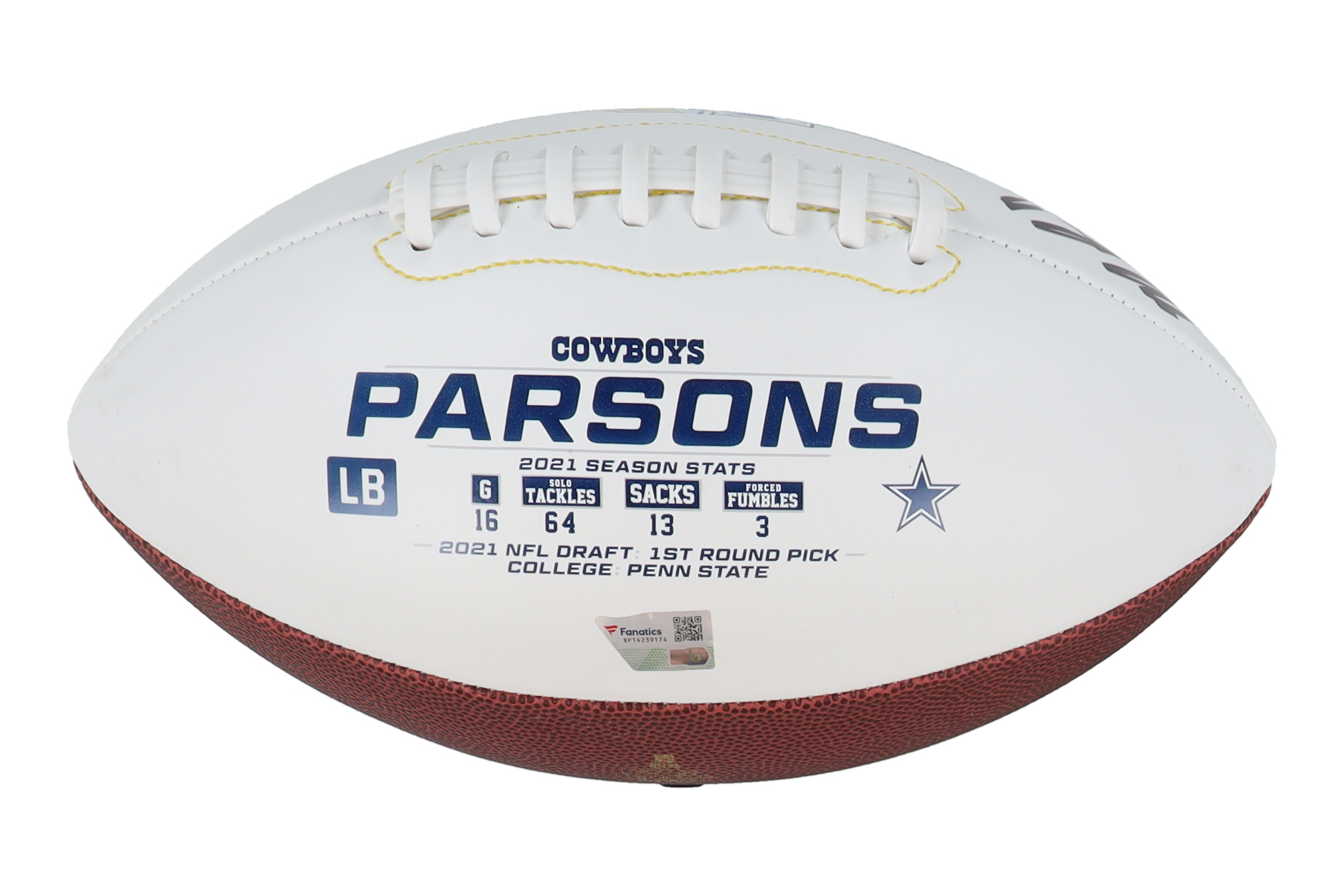 Dallas Cowboys logo football. Hand-signed and inscribed by Micah Parsons.