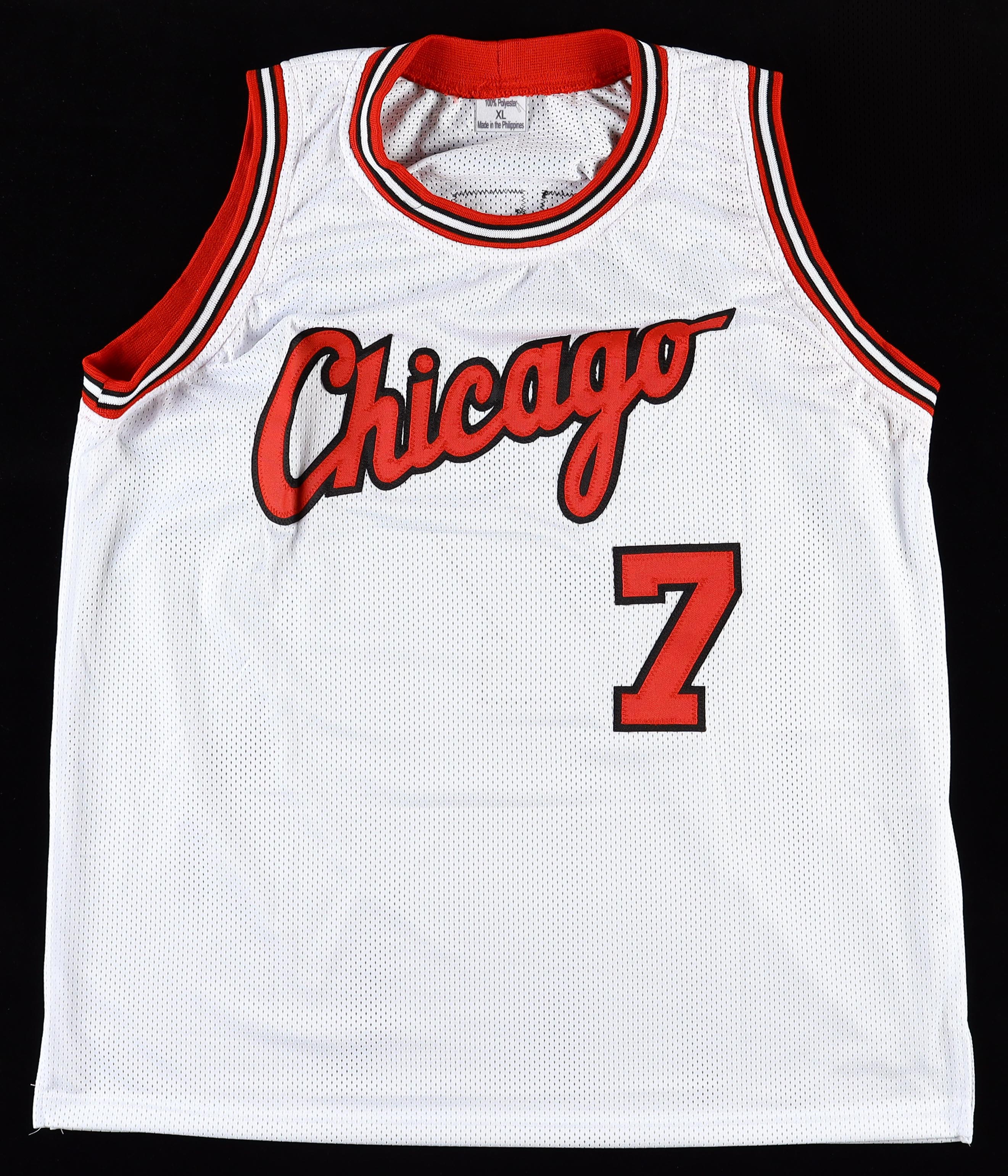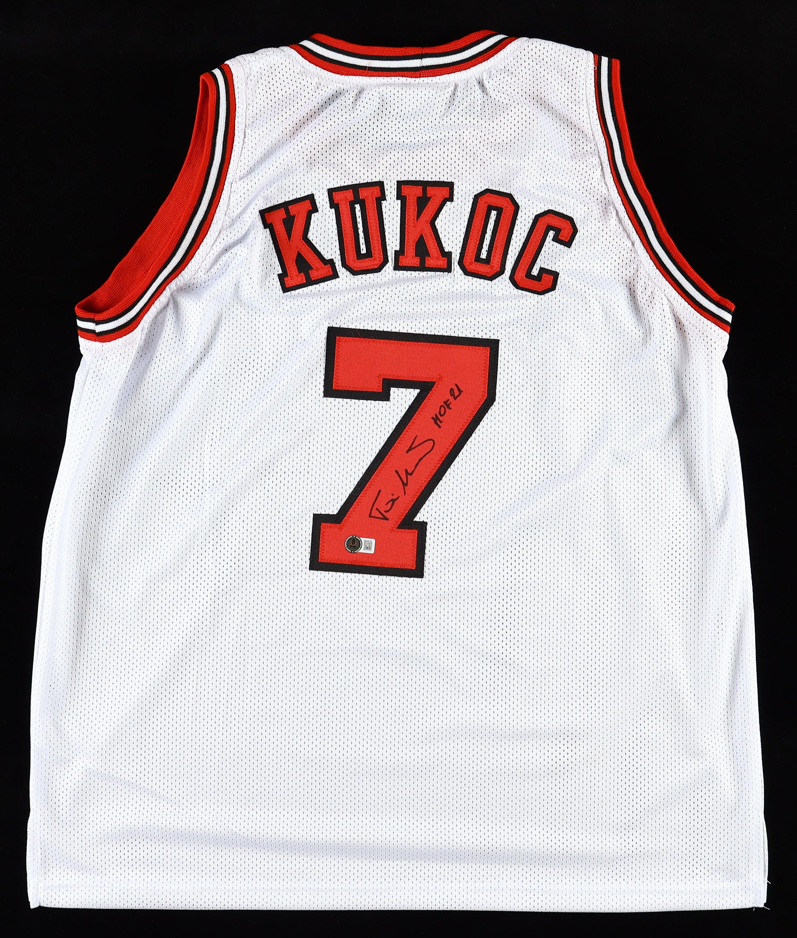 Custom jersey with everything sewn on, size XL. Hand-signed and inscribed by Toni Kukoc (HOF).