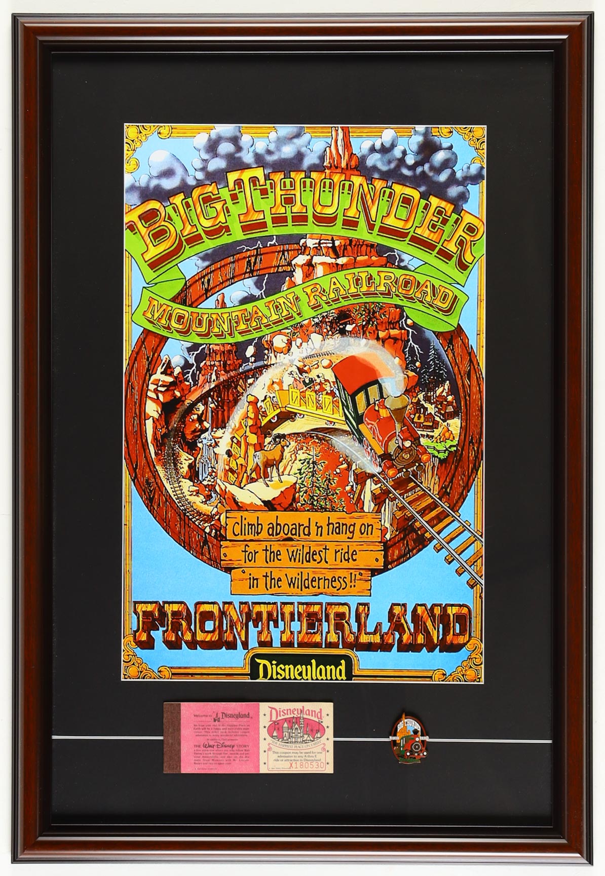 Disneyland "Big Thunder Mountain Railroad" Custom Framed Poster Print with Vintage Disneyland Ticket Book & Official Ride Pin