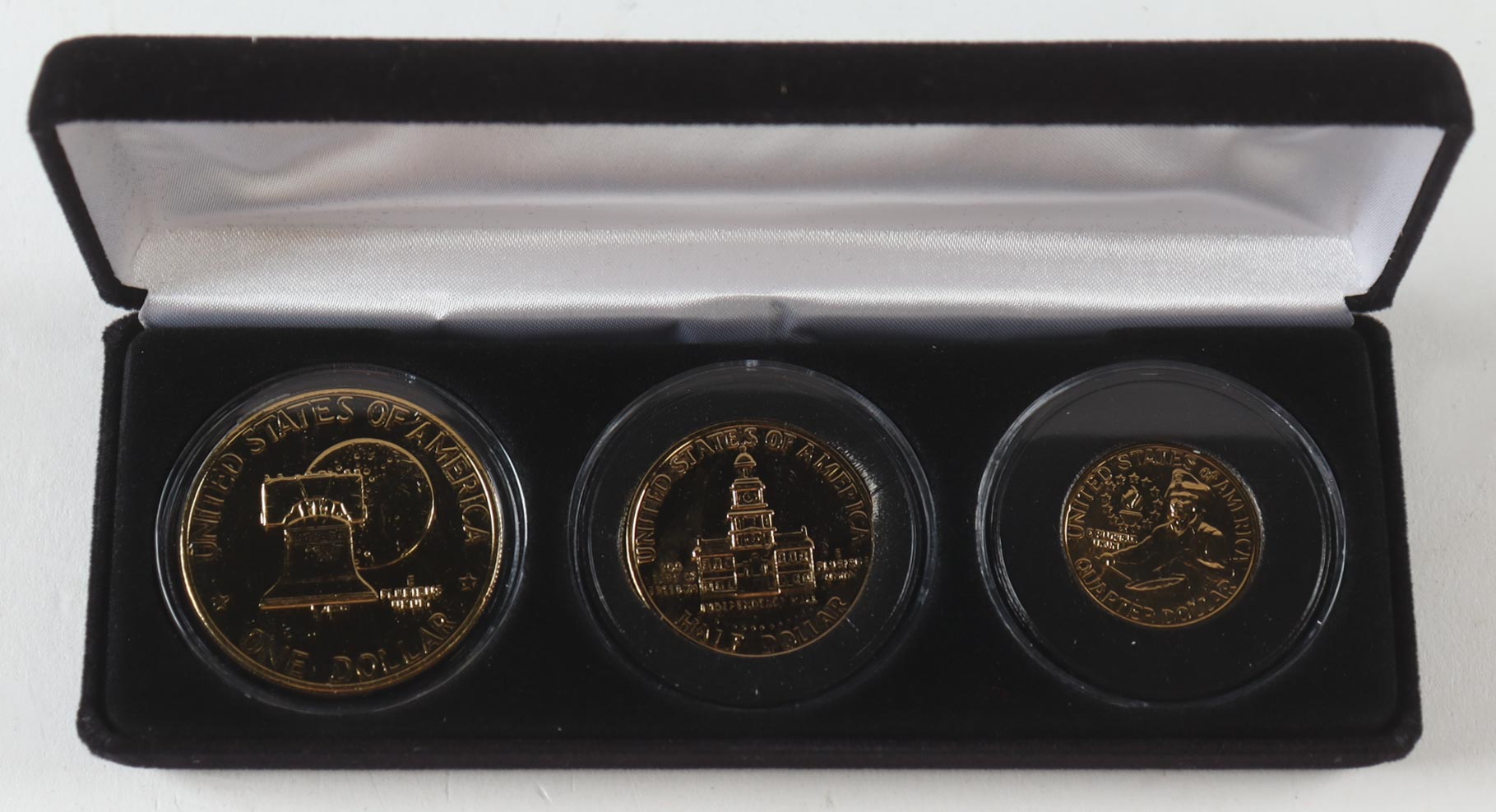 1776-1976 United States Bicentennial 24KT Gold Plated (3) Coin Set With Display Case