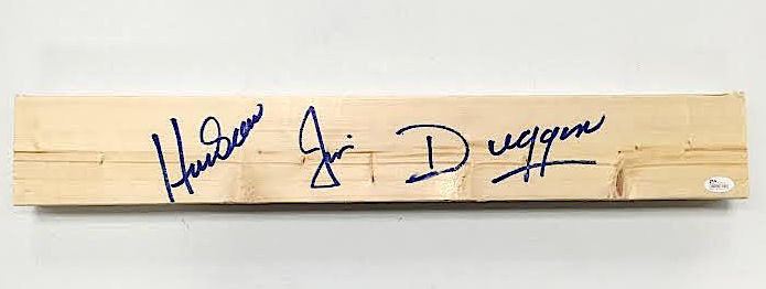 Wood measures 24" in length and has been hand-signed in blue felt-tip pen by Jim "Hacksaw" Duggan.