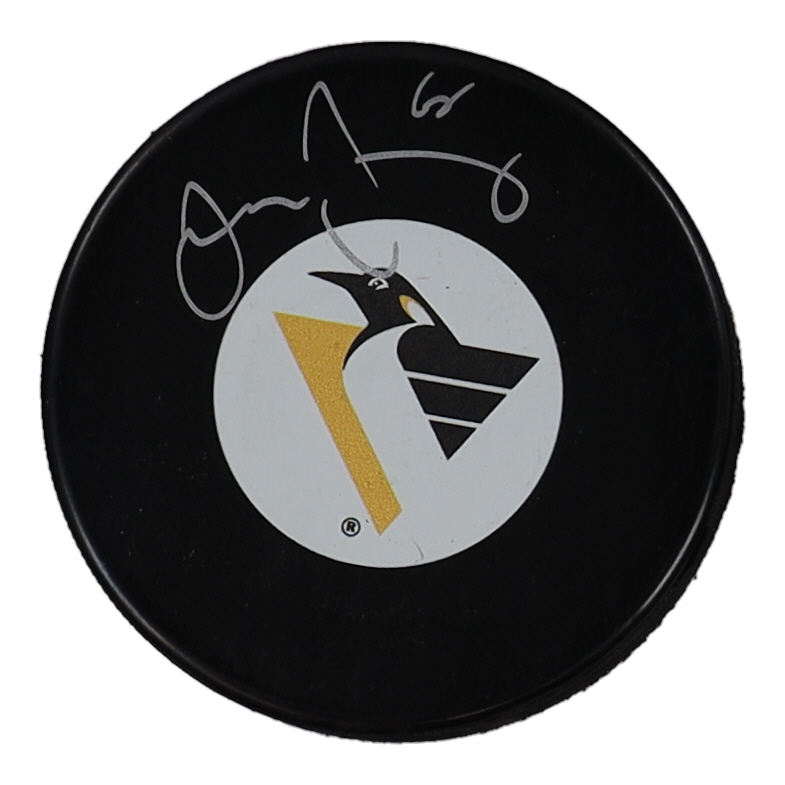 Pittsburgh Penguins logo hockey puck has been hand-signed by Jaromir Jagr.