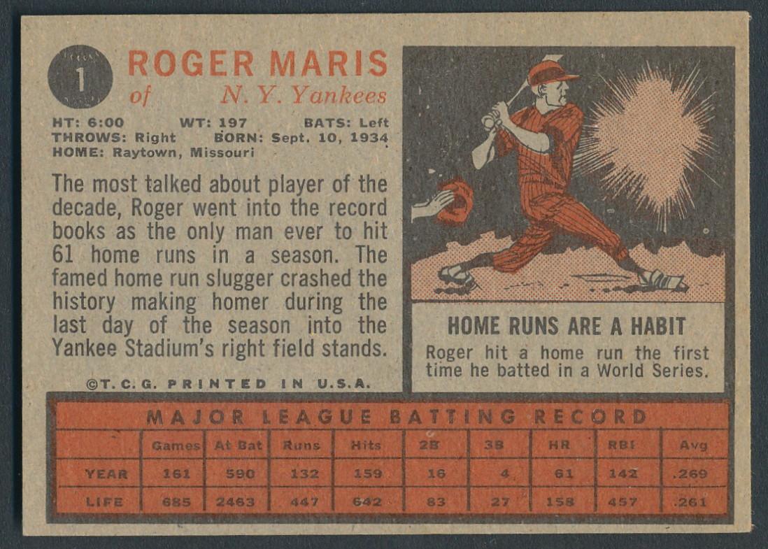 Roger Maris 1962 Topps #1