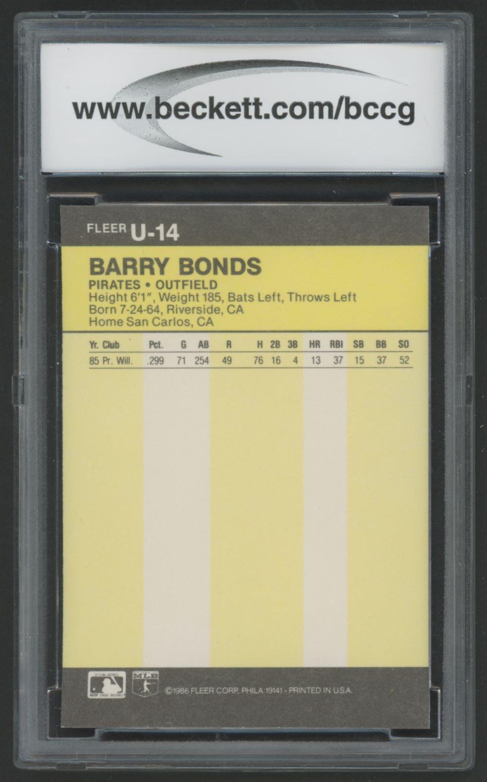 Barry Bonds 1986 Fleer Update #U14 XRC (BCCG 10)