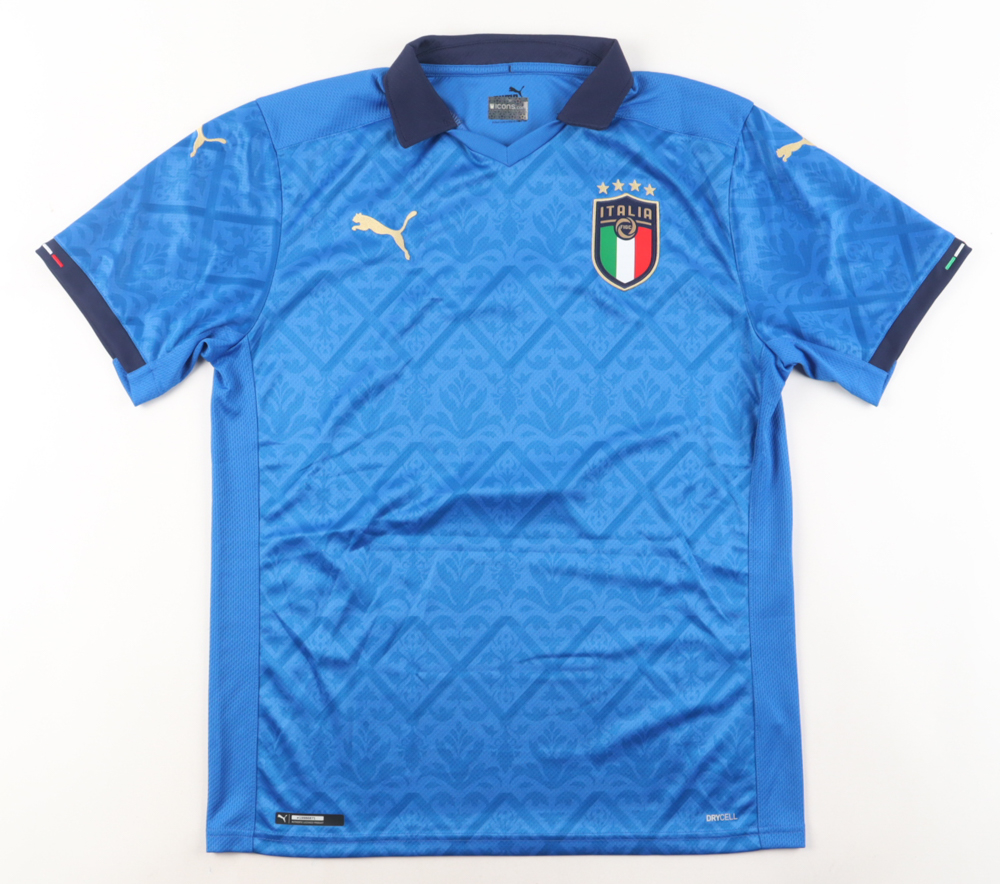 Puma jersey with everything is printed on, size XL. Hand-signed by Giorgio Chiellini (Italy National Team).