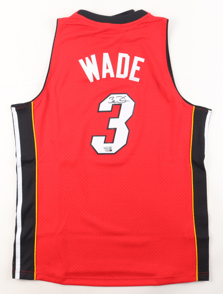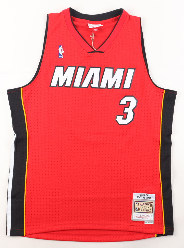 Mitchell & Ness jersey with everything pressed on, size L. Hand-signed by Dwyane Wade (Miami Heat, HOF).