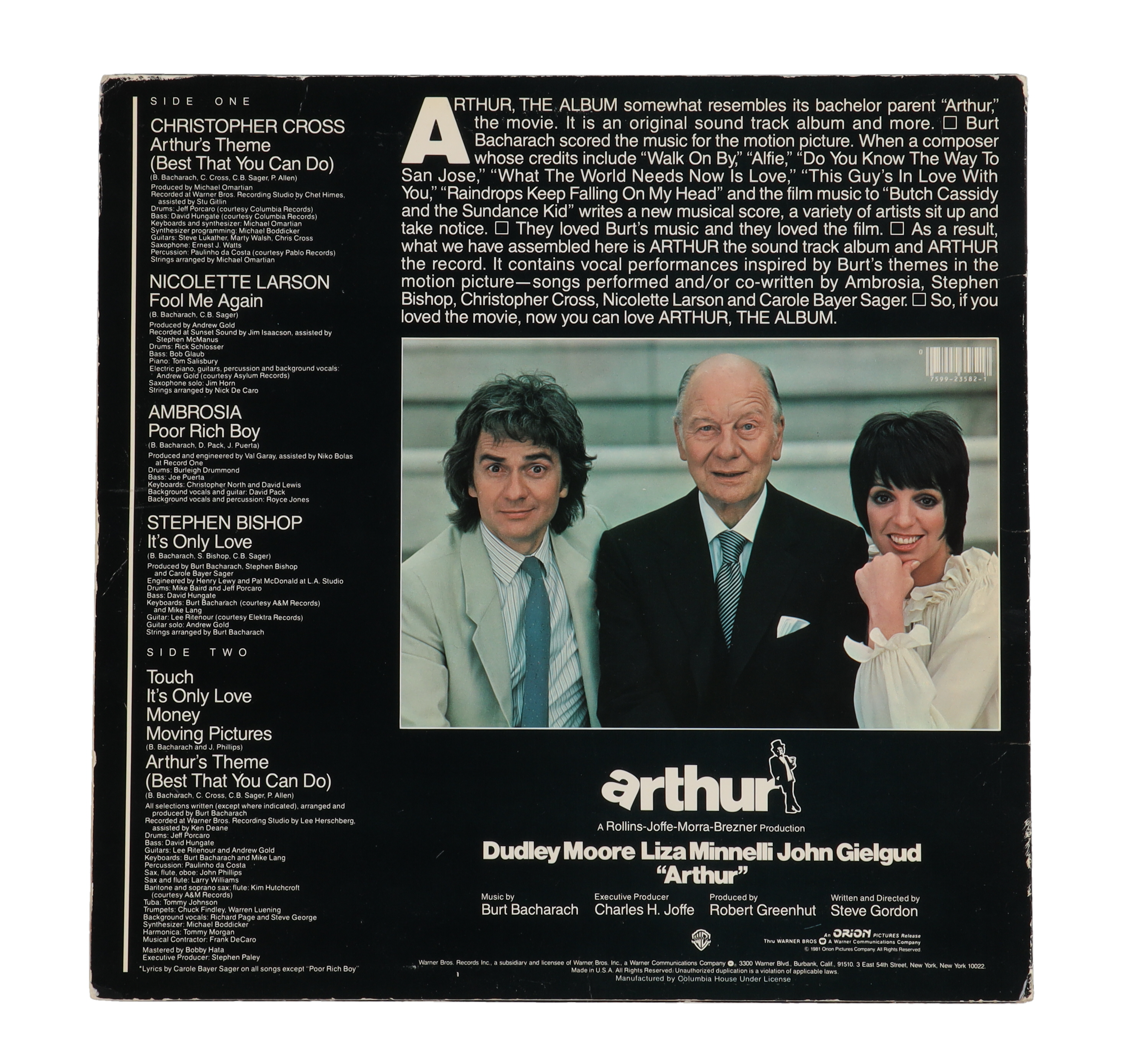 Liza Minnelli Signed "Arthur: The Album" Vinyl Record Album Cover Inscribed "Love" (ACOA)