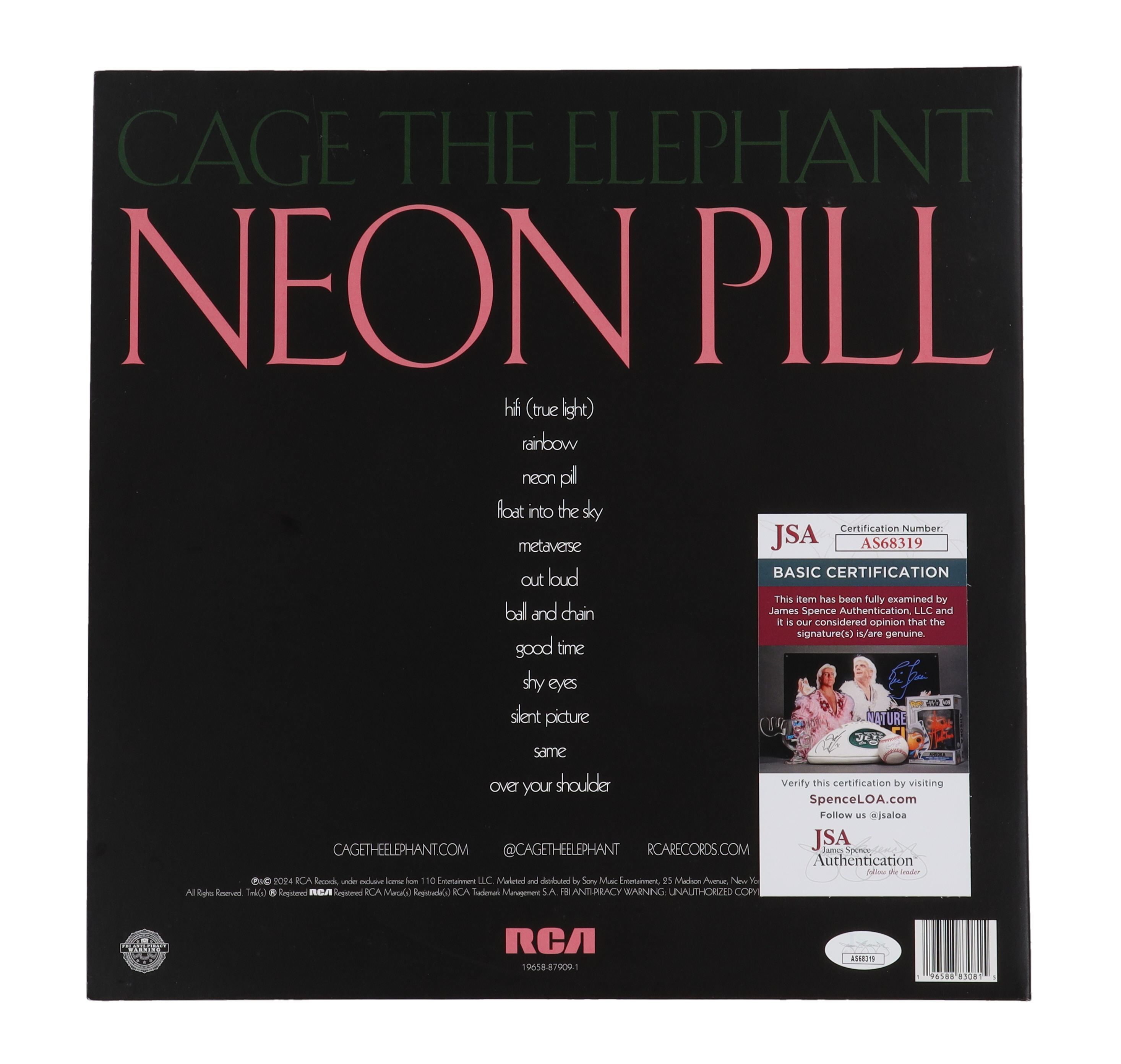 Cage the Elephant "Neon Pill" Vinyl Record Album Cover Signed By (6) With Matt Shultz, Brad Shultz, Daniel Tichenor, Jared Champion (JSA)