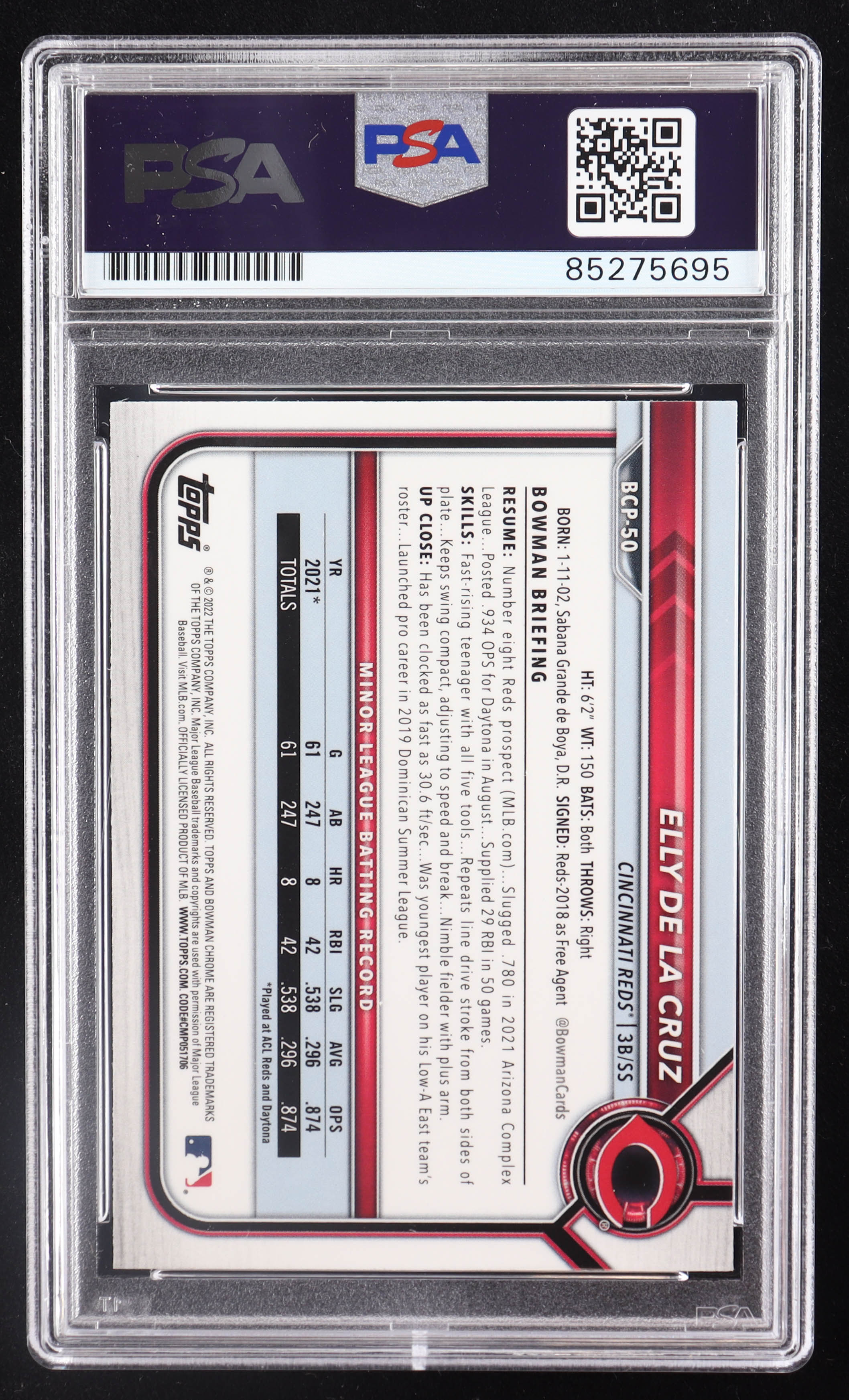 Elly De La Cruz Signed 2022 Bowman Chrome Prospects #BCP50 RC (PSA | Auto 10)