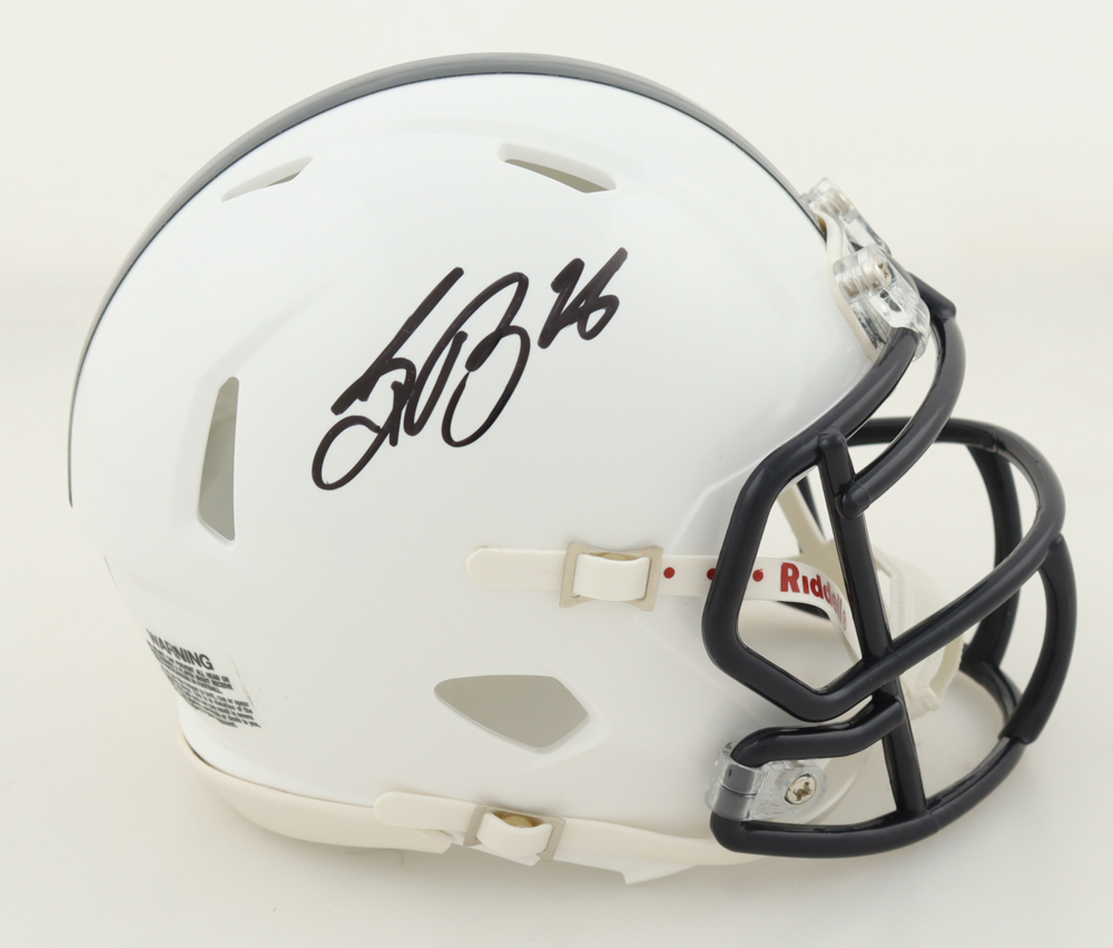 Riddell Pen State Nittany Lions speed mini helmet. Has been hand-signed by Saqoun Barkley.