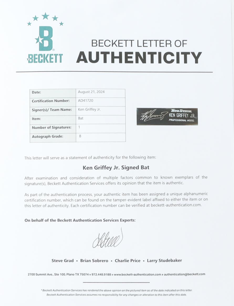 Ken Griffey Jr. Signed Rawlings Big Stick Pro Player Model Baseball Bat (Beckett Auto Grade 8)