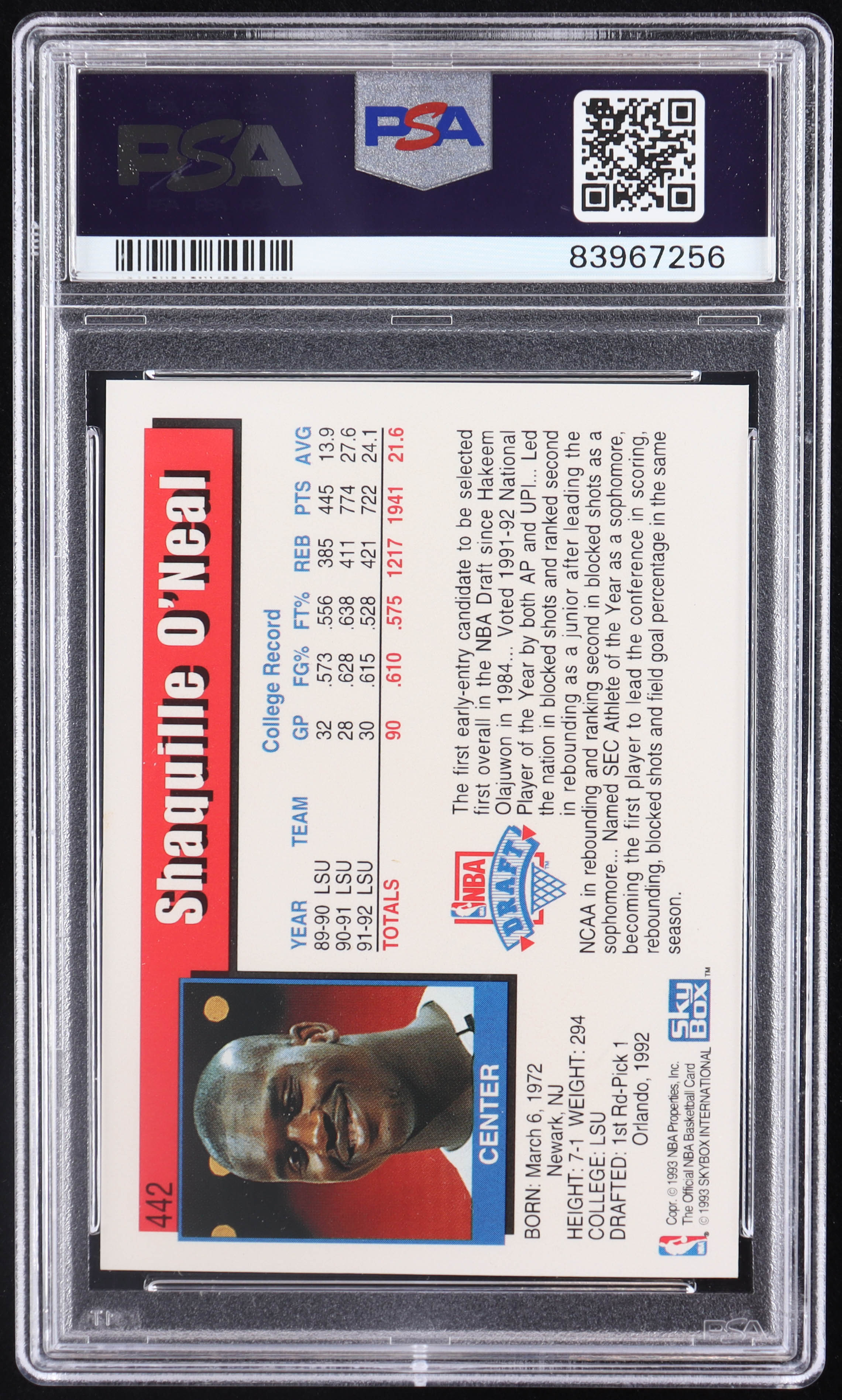 Shaquille O'Neal Signed 1992-93 Hoops #442 RC (PSA 10 | Auto 10)