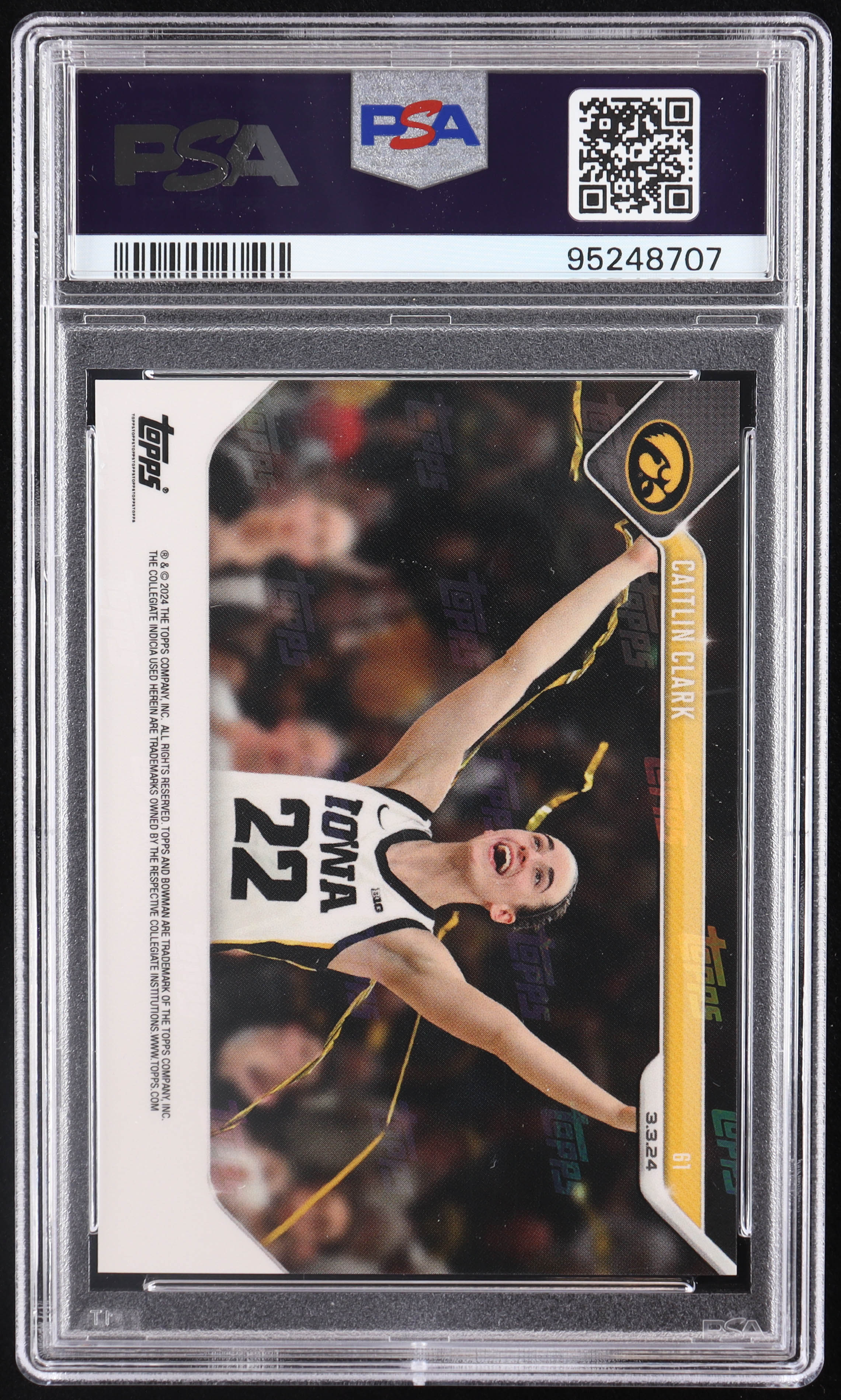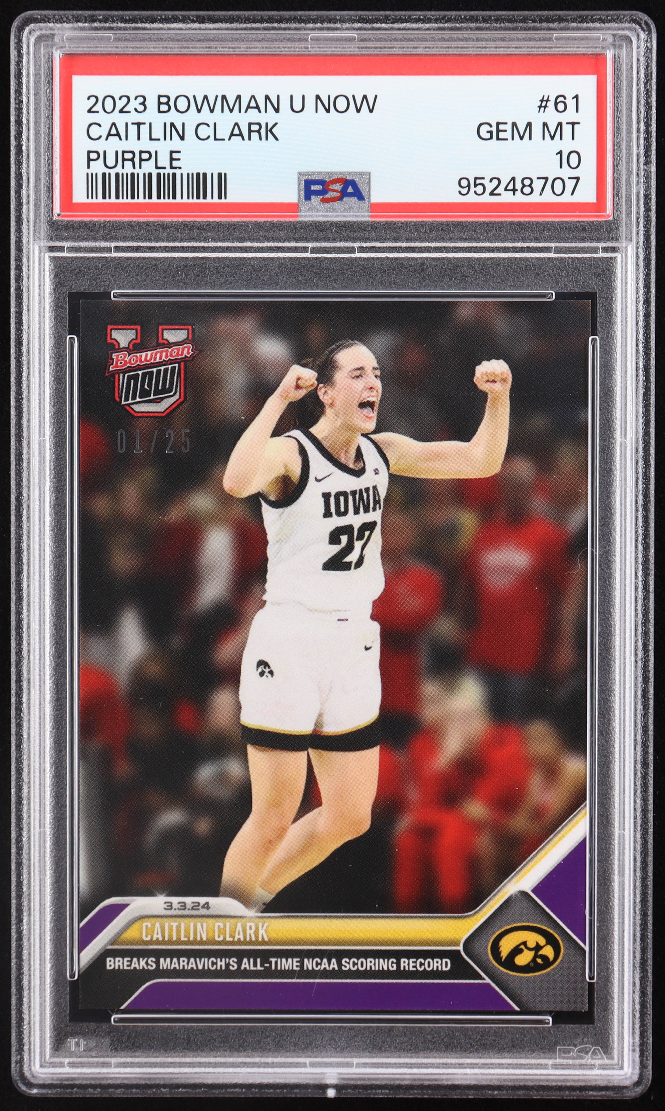 Caitlin Clark 2023-24 Bowman University Now Purple #61 #01/25 RC (PSA 10)