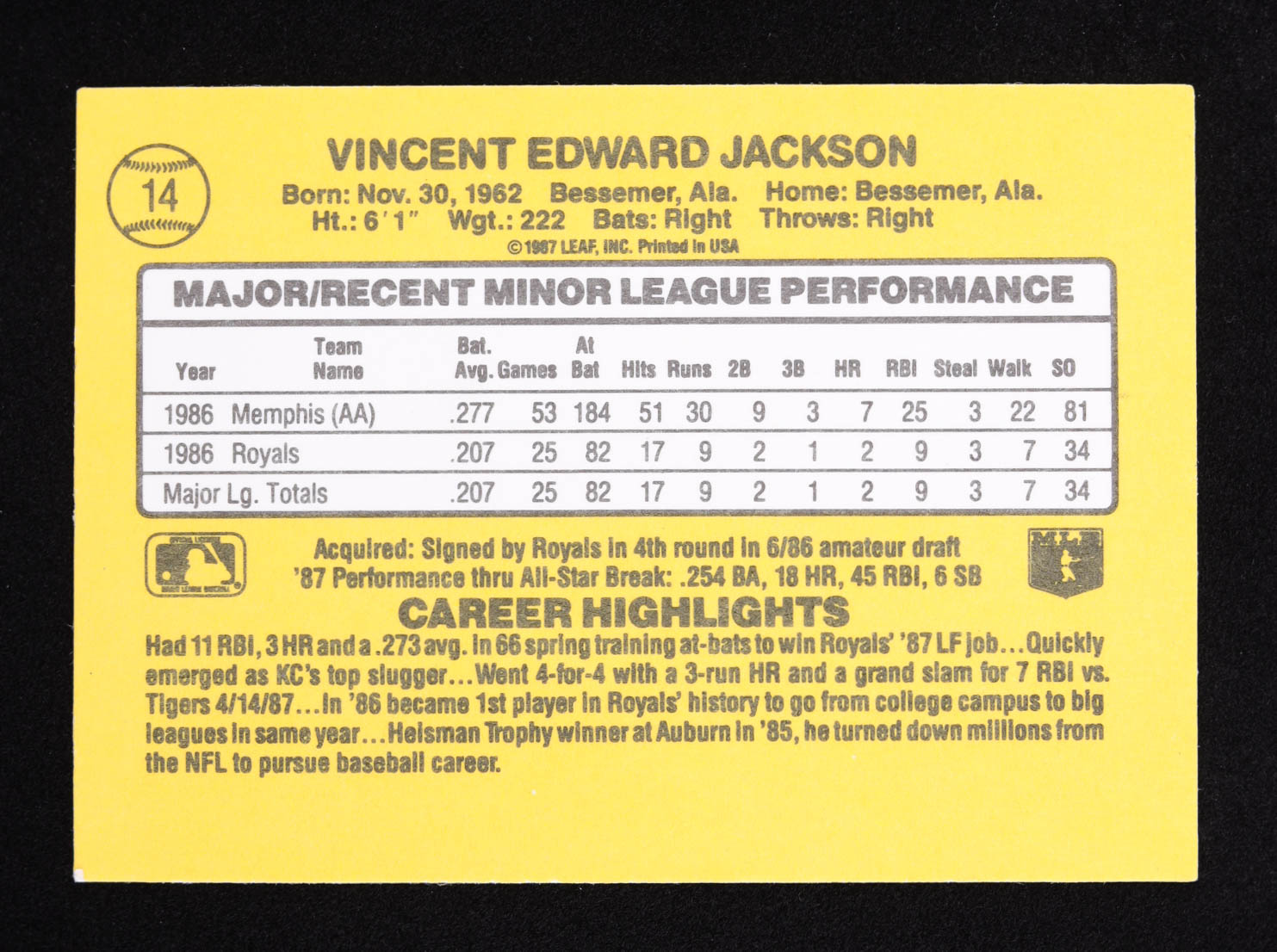 Bo Jackson 1987 Donruss Rookies #14 RC
