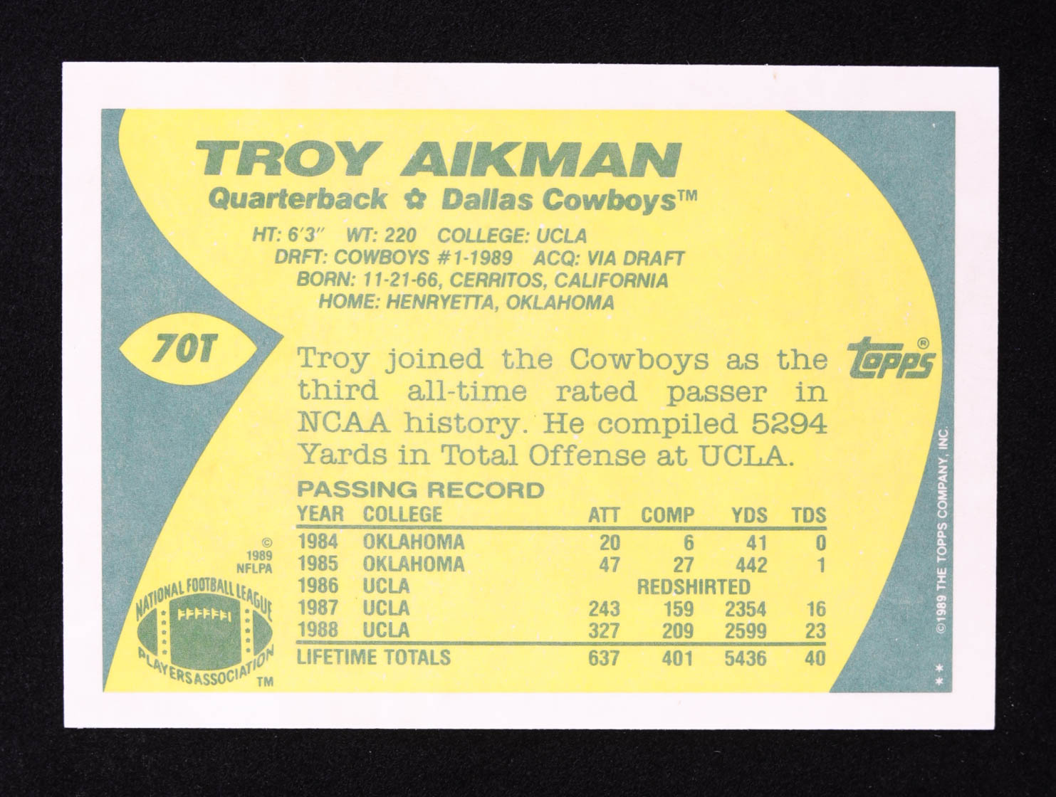 Troy Aikman 1989 Topps Traded #70T RC