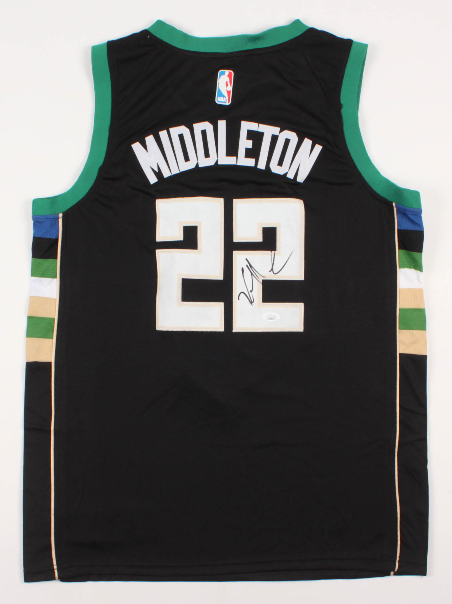 Nike jersey with everything sewn on, size 52. Hand-signed by Khris Middleton ( Milwaukee Bucks).