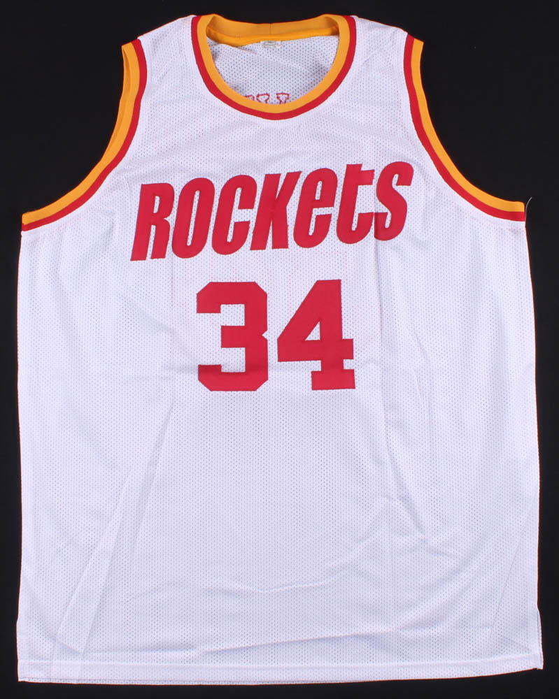 Custom jersey with everything sewn on, size XL. Hand-signed by Hakeem Olajuwon (HOF).