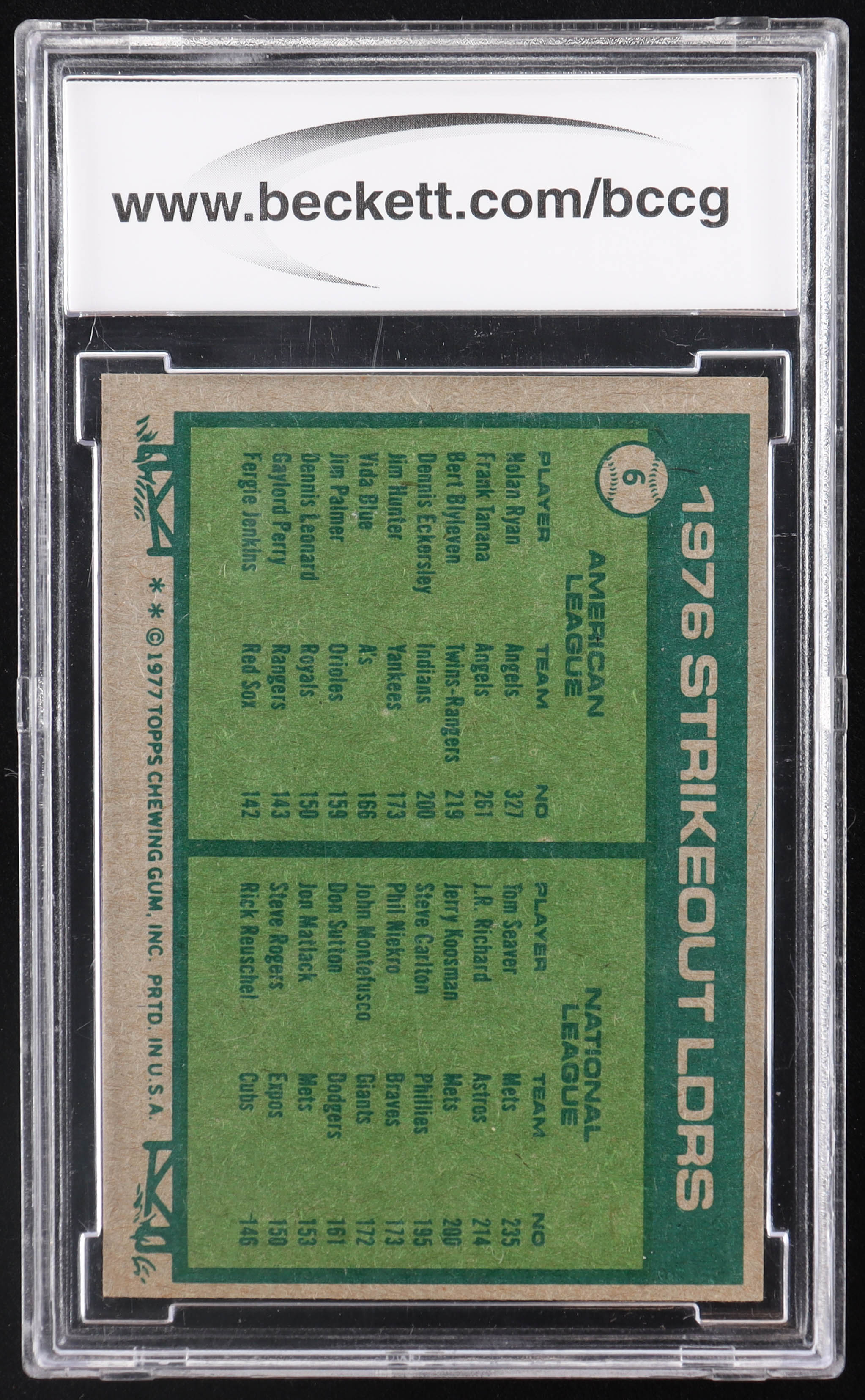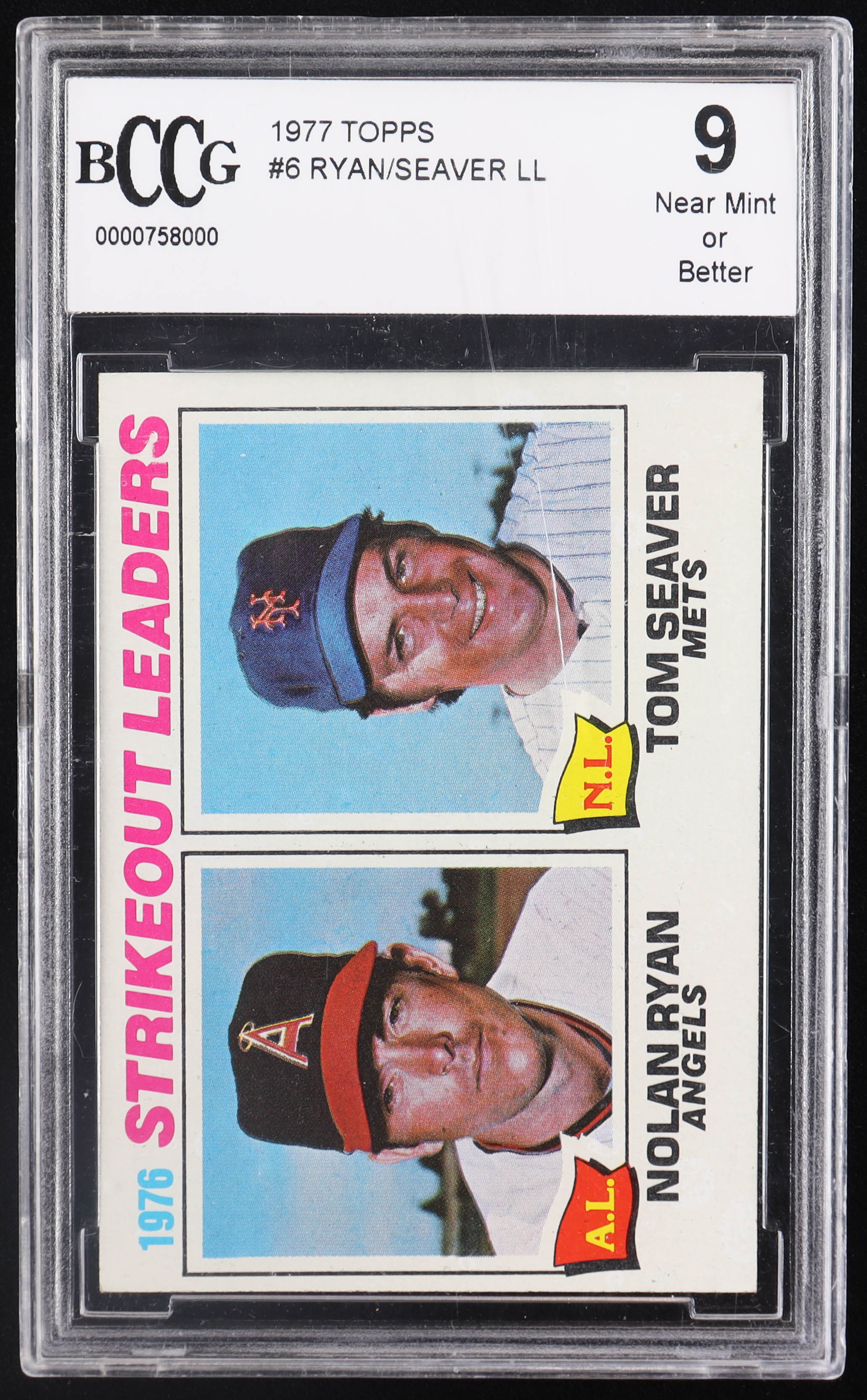Nolan Ryan / Tom Seaver 1977 Topps #6 Strikeout Leaders (BCCG 9)