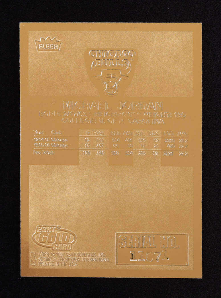 Michael Jordan 1997 Fleer Premier Signature Series Holo Prism Refractor 23Kt Gold Card