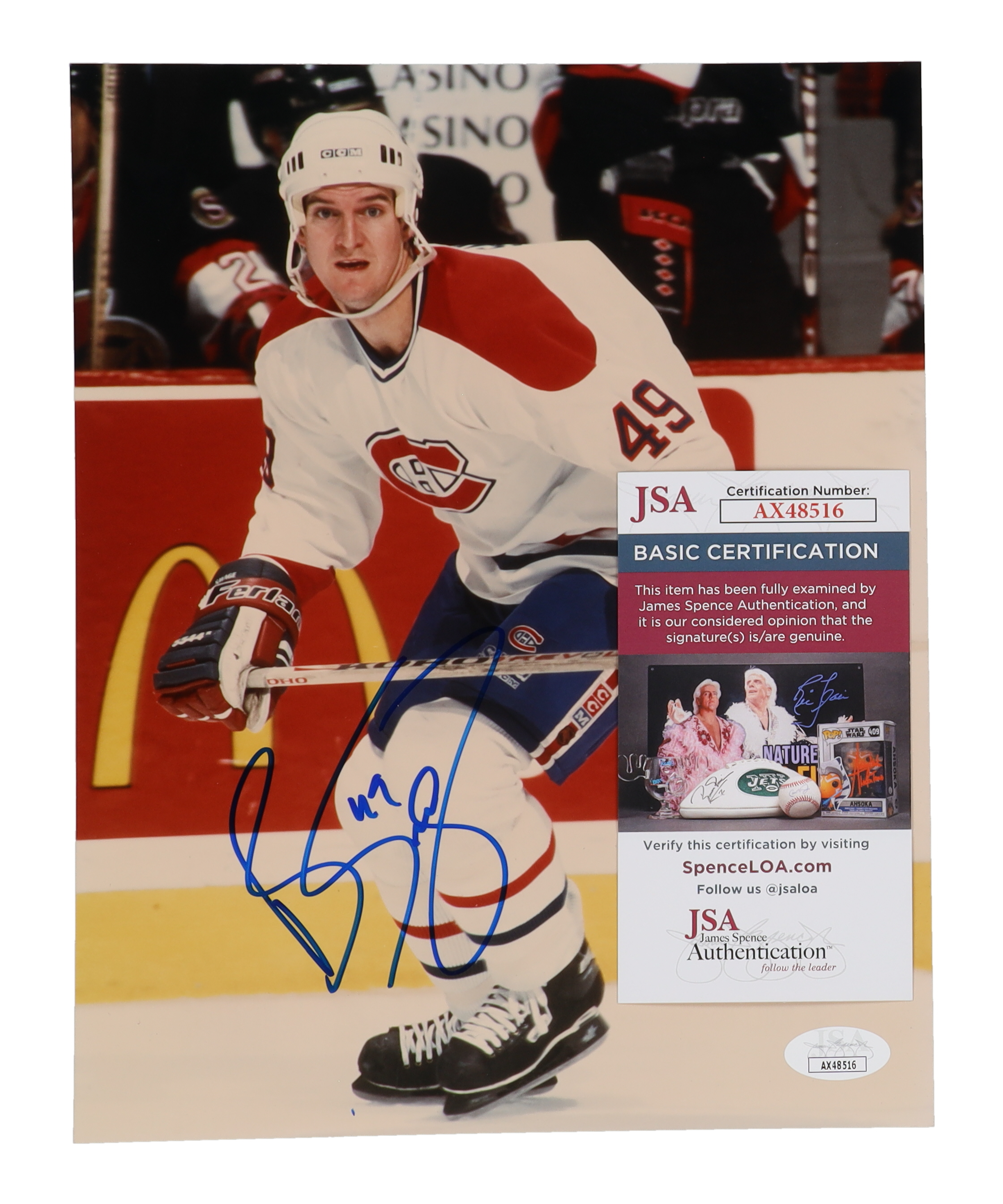 Photo measures 8" x 10" in size. Hand-signed by Brian Savage (Montreal Canadiens).