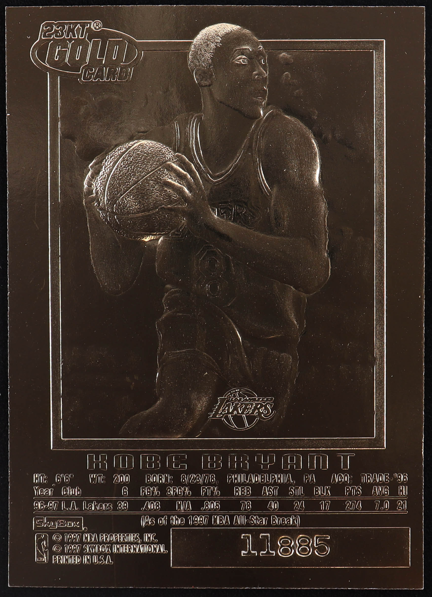 Kobe Bryant 1996-97 Skybox E-X2000 Sky Blue 23Kt Gold RC