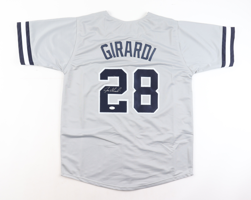 Custom jersey with everything sewn own, size XL. Hand-signed by Joe Girardi.