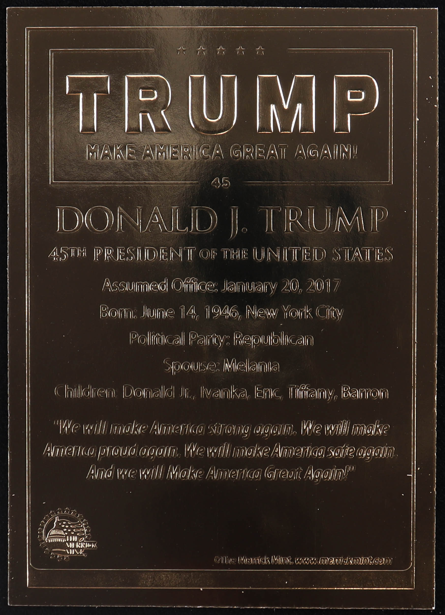 Donald Trump 2021 Merrick Mint For President 2024 Red Signature Series 23Kt Gold Card