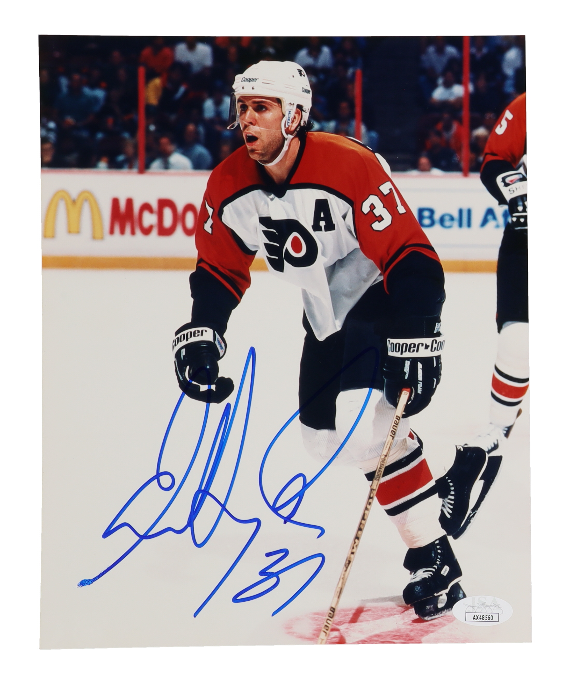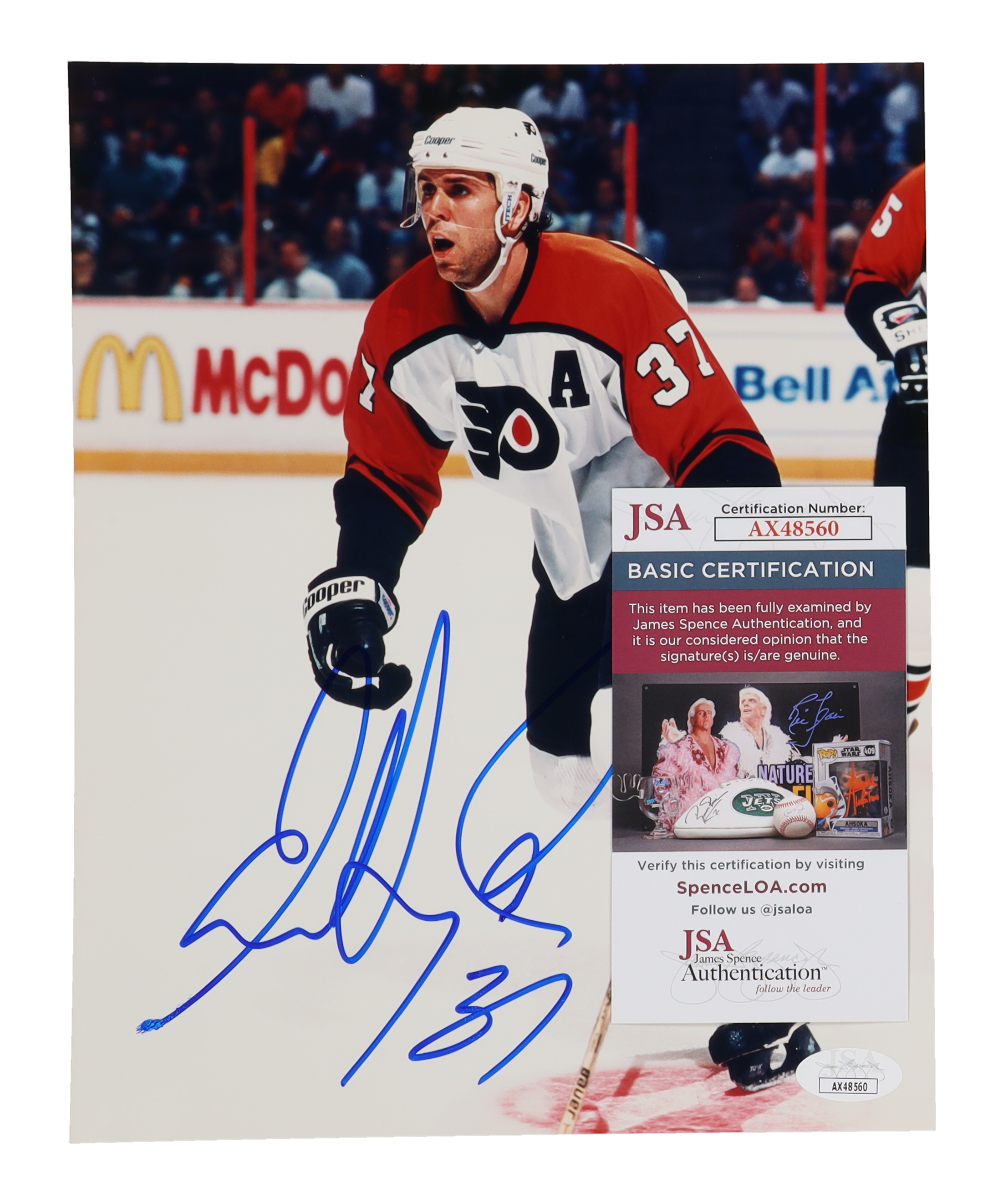 Photo measures 8" x 10" in size. Hand-signed by Eric Desjardins (Philadelphia Flyers).