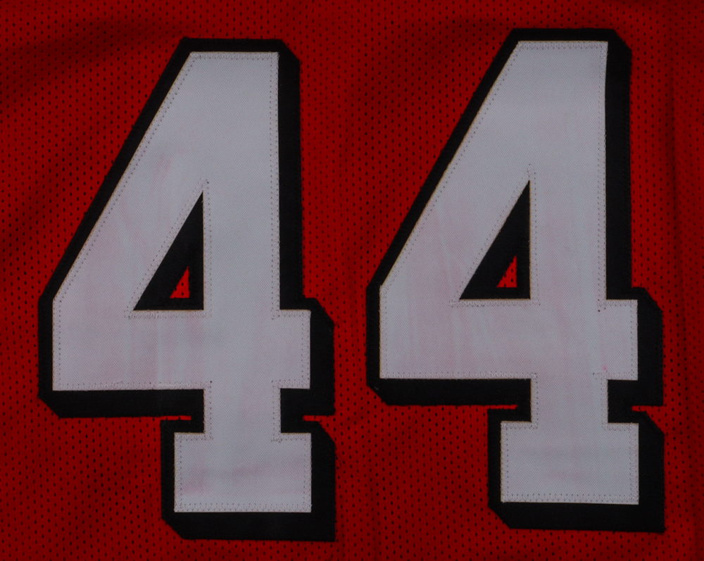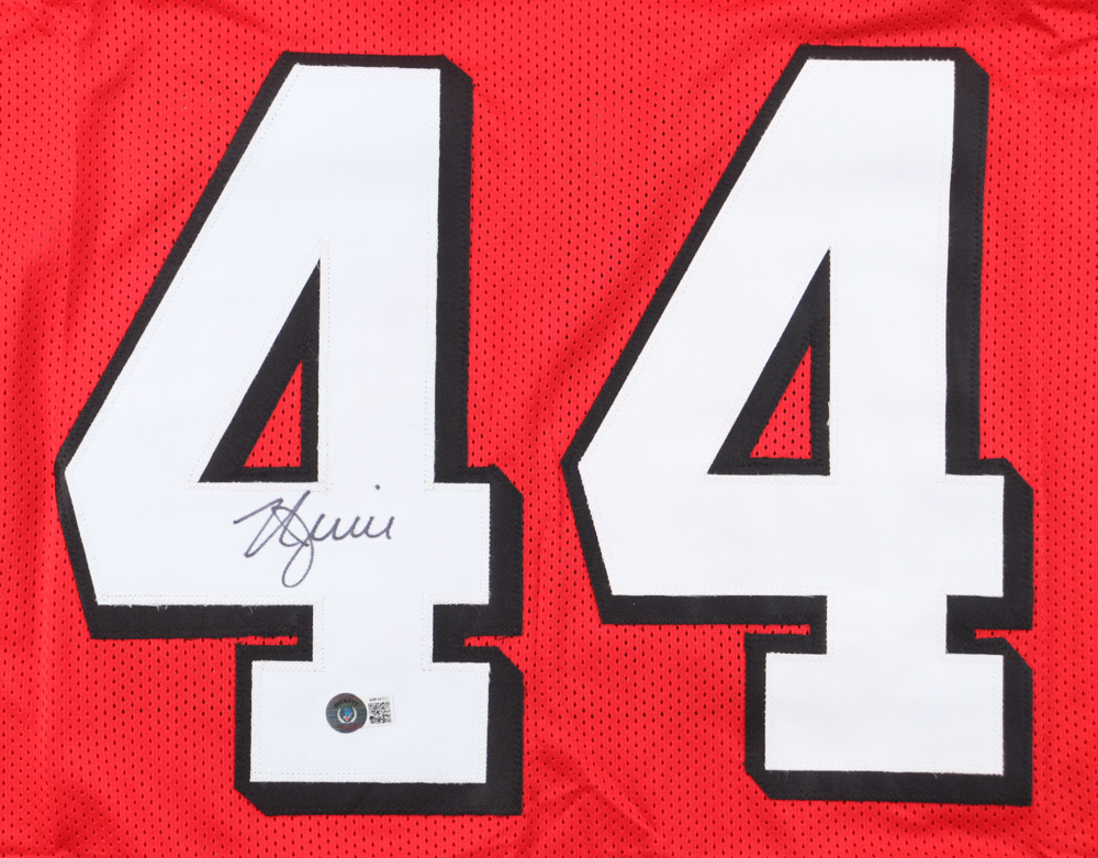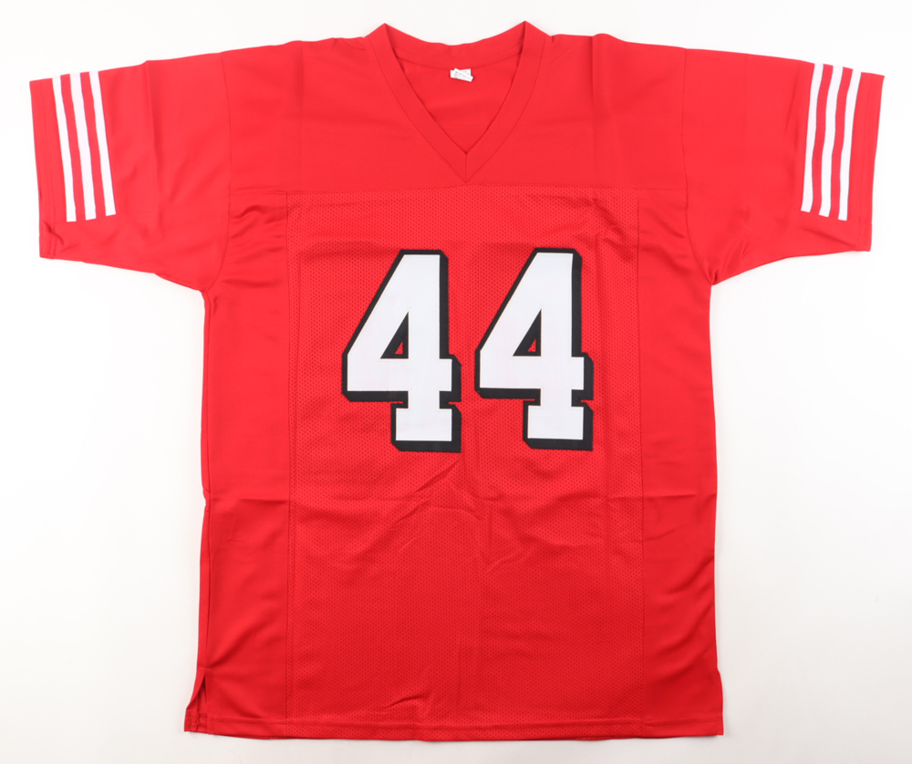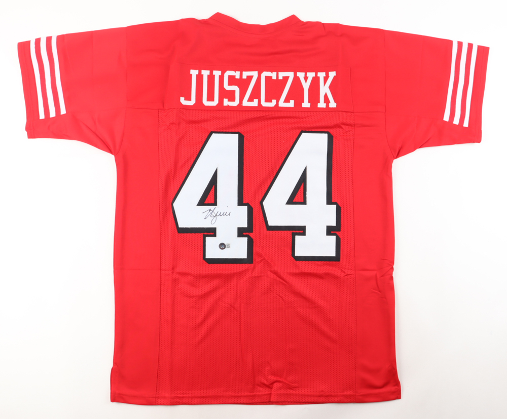 Custom Jersey with everything sewn on, size XL. Hand-signed by Kyle Juszczyk. Please note, glue is visible through the front number.