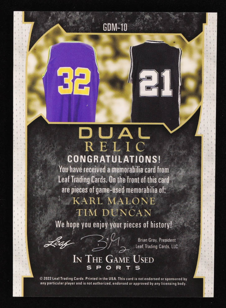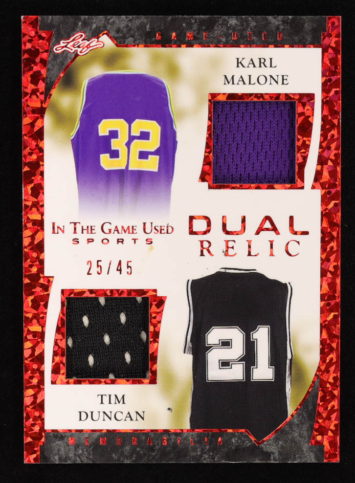 Karl Malone / Tim Duncan 2022 ITG Used Sports Game Used Dual Memorabilia Red Pattern #GUDM10 #25/45