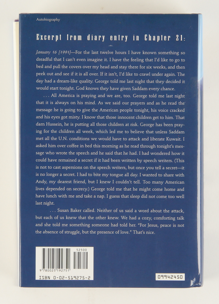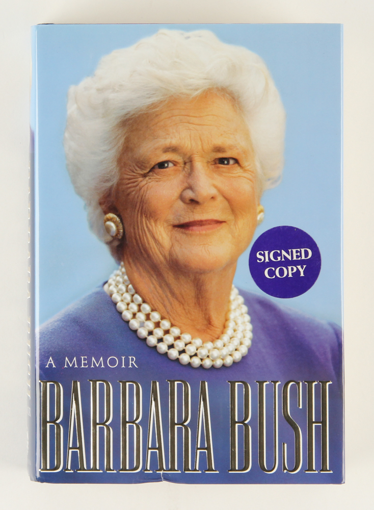 Barbara Bush "A Memoir" hardcover book has been hand-signed in blue ink pen on the inside page by Barbara Bush.