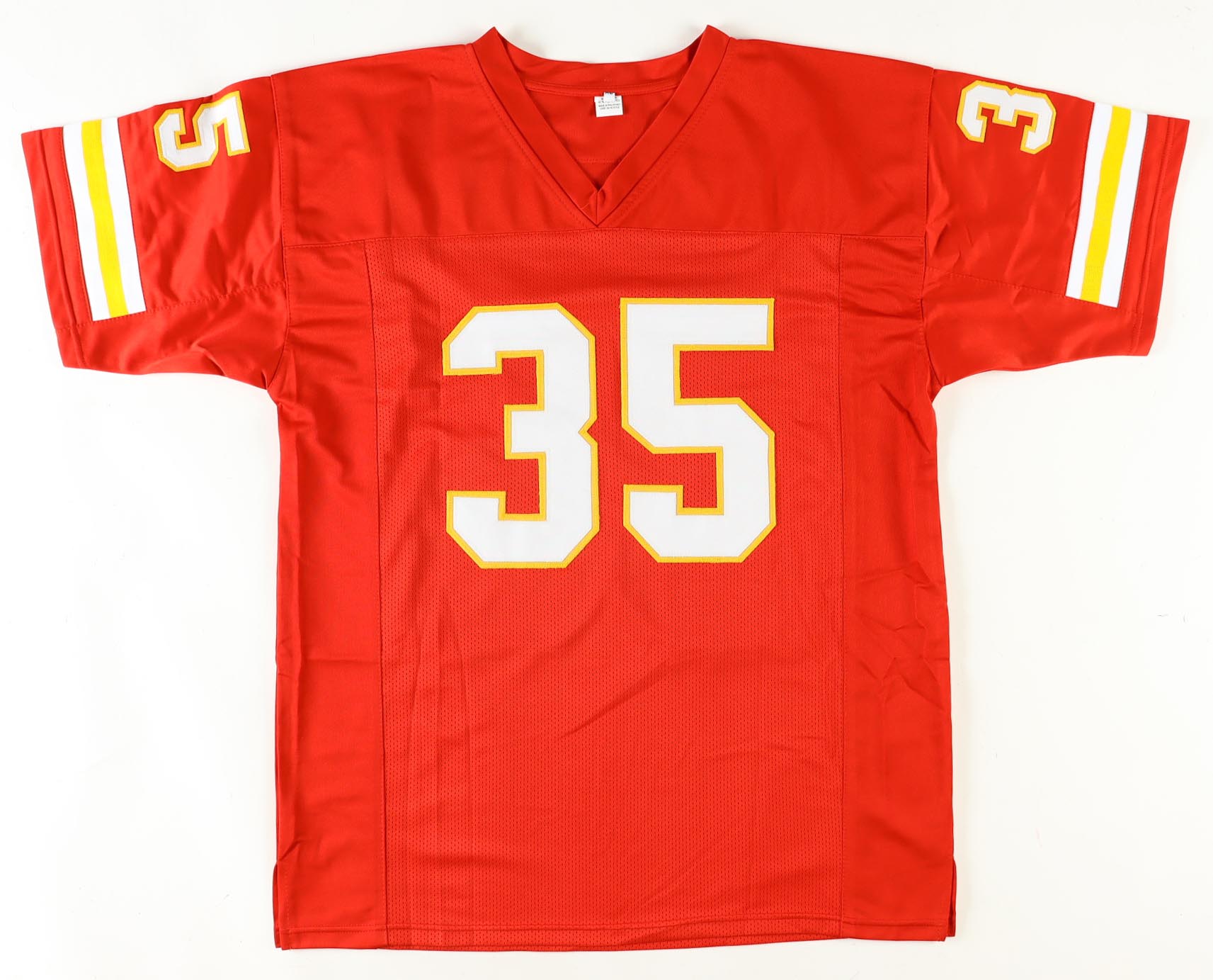 Custom jersey with everything sewn on, size XL. Hand-signed by Christian Okoye.