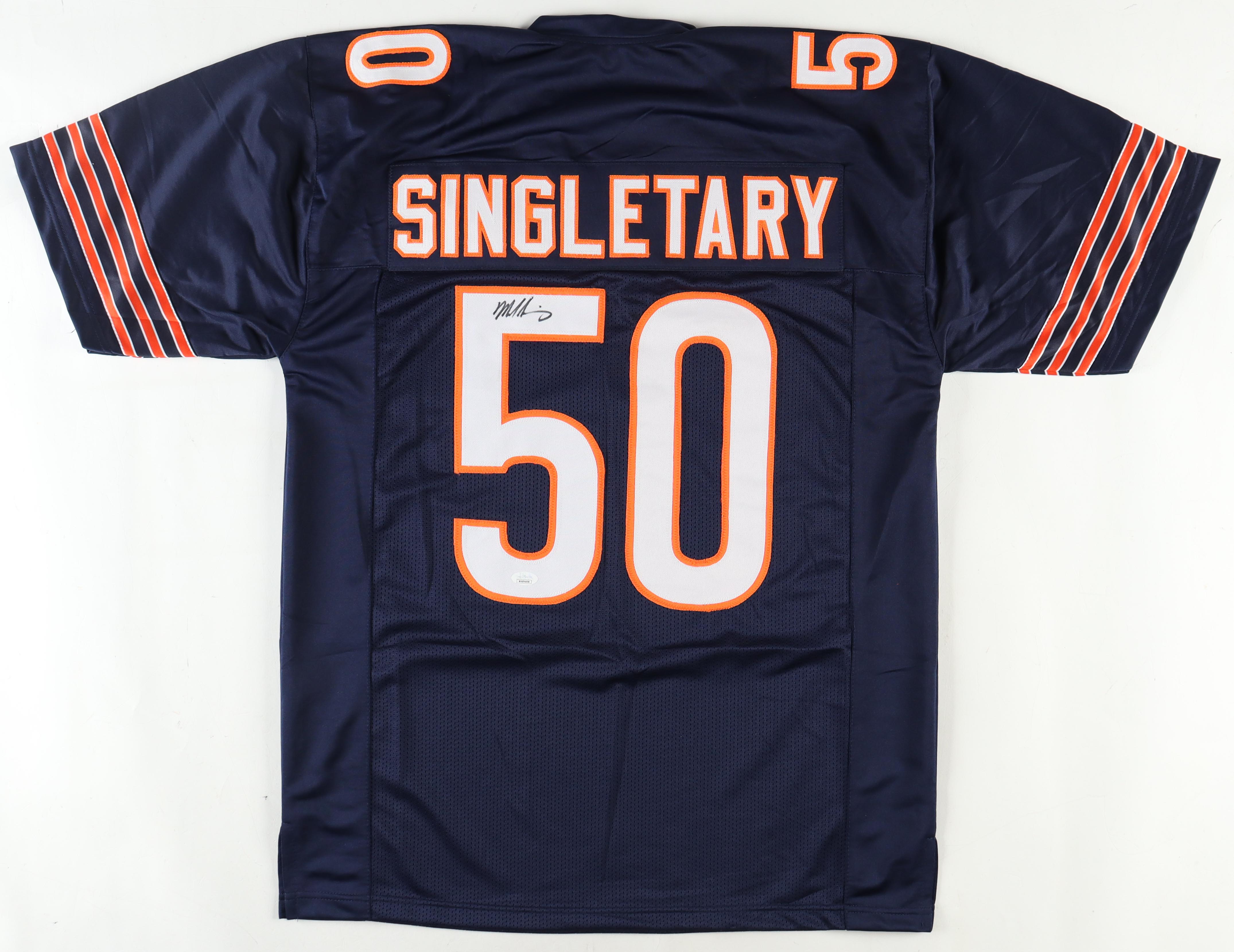 Custom jersey with everything sewn on, size XL. Hand-signed by Mike Singletary (HOF).