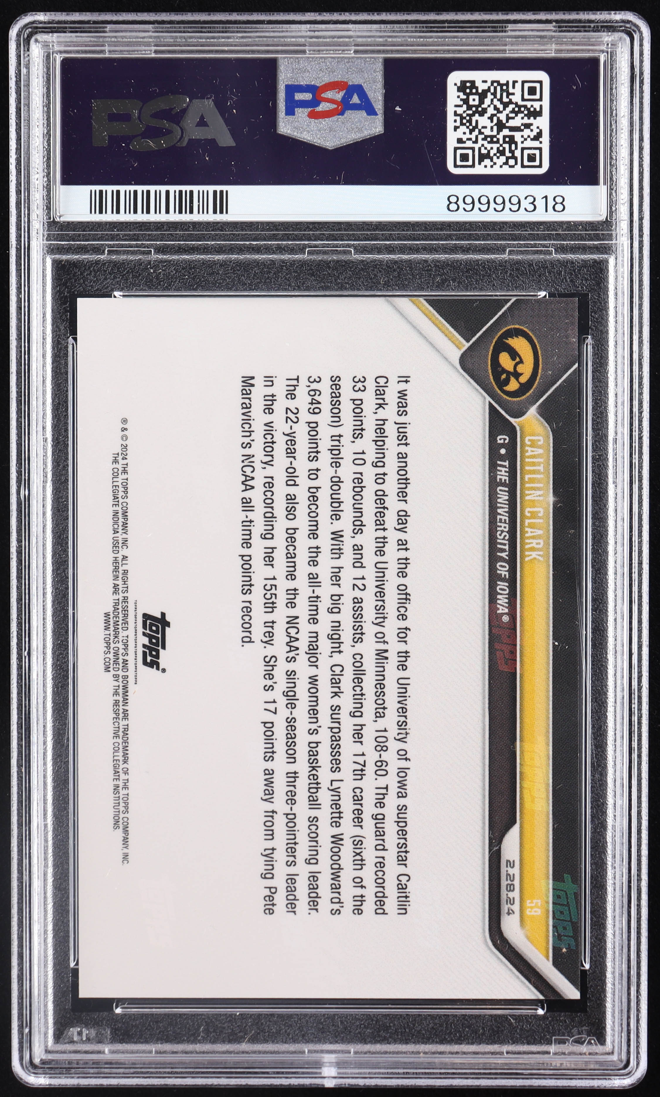 Caitlin Clark 2023-24 Bowman University Now #59 RC (PSA 10)