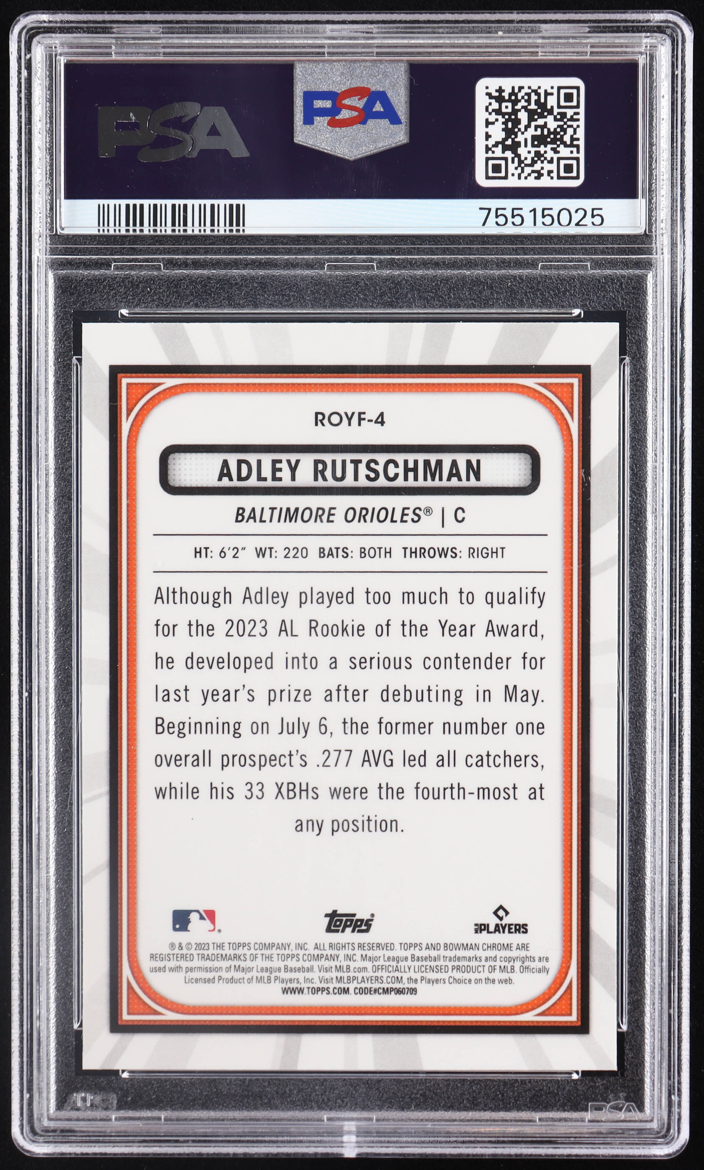 Adley Rutschman 2023 Bowman Chrome Rookie of the Year Favorites #ROYF4 RC (PSA 10)