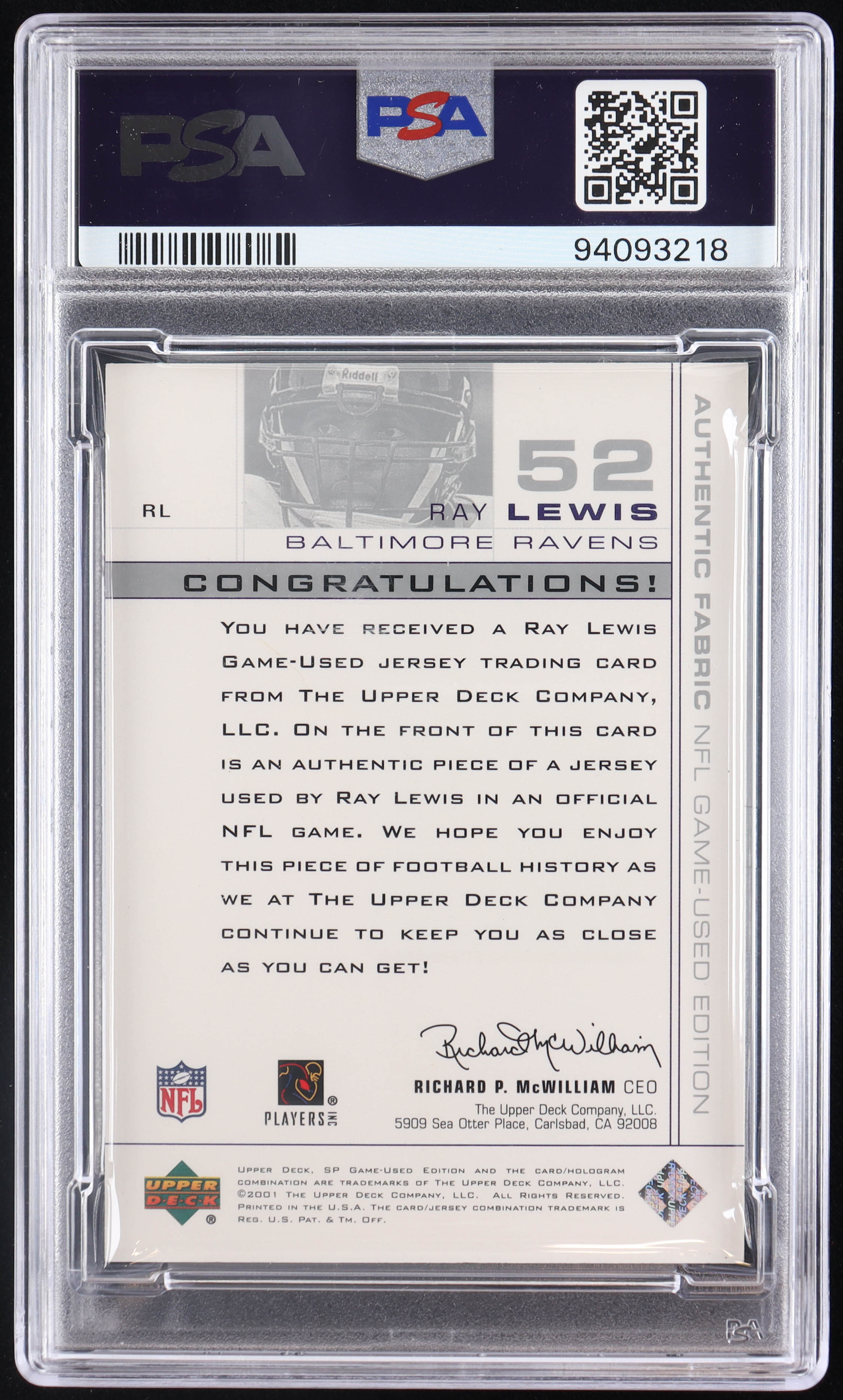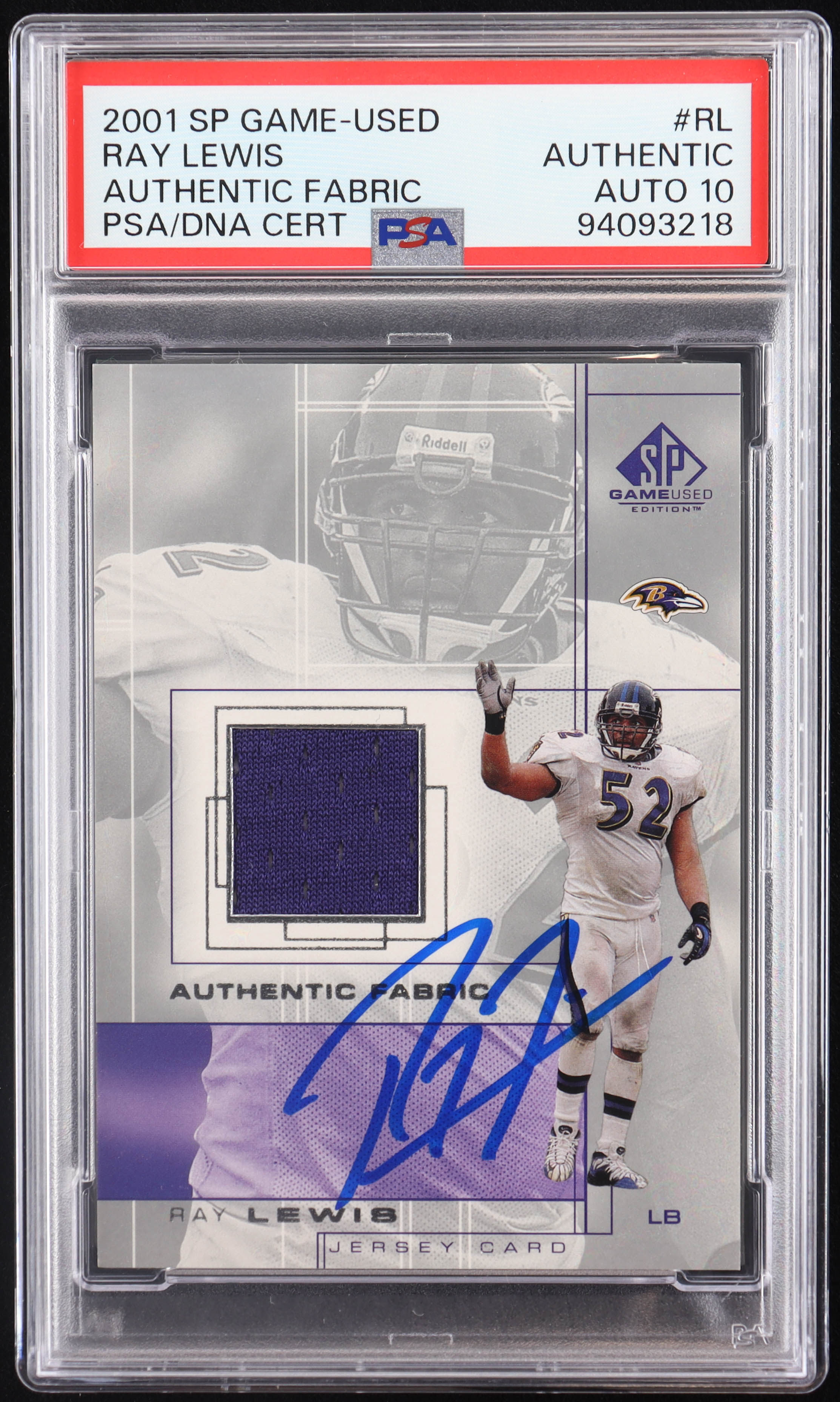 Ray Lewis Signed 2001 SP Game Used Edition Authentic Fabric #RL (PSA | Autograph Graded PSA 10)