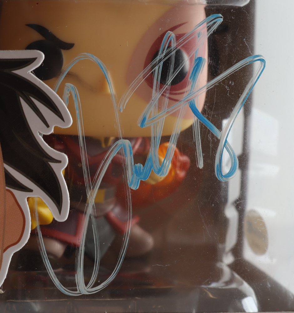 Vinyl figure measures approximately 4" tall and has been hand-signed by Dante Basco. Please note, the window has been swapped, the signature is fading, and there is heavy damages to the packaging.