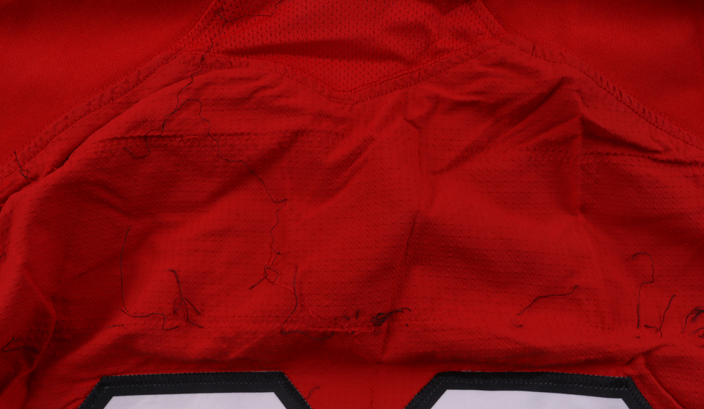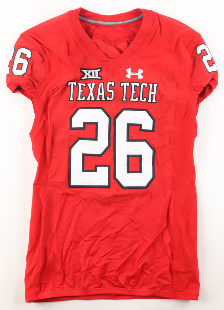 Texas Tech Authentic Under Armour jersey with everything sewn on, size 48. This jersey was team issued from the 2019-2022 NCAA Football seasons. Please note the jersey is unsigned. Also, there is staining on the left shoulder and the name plate has been removed. See photos regarding the condition of the item.