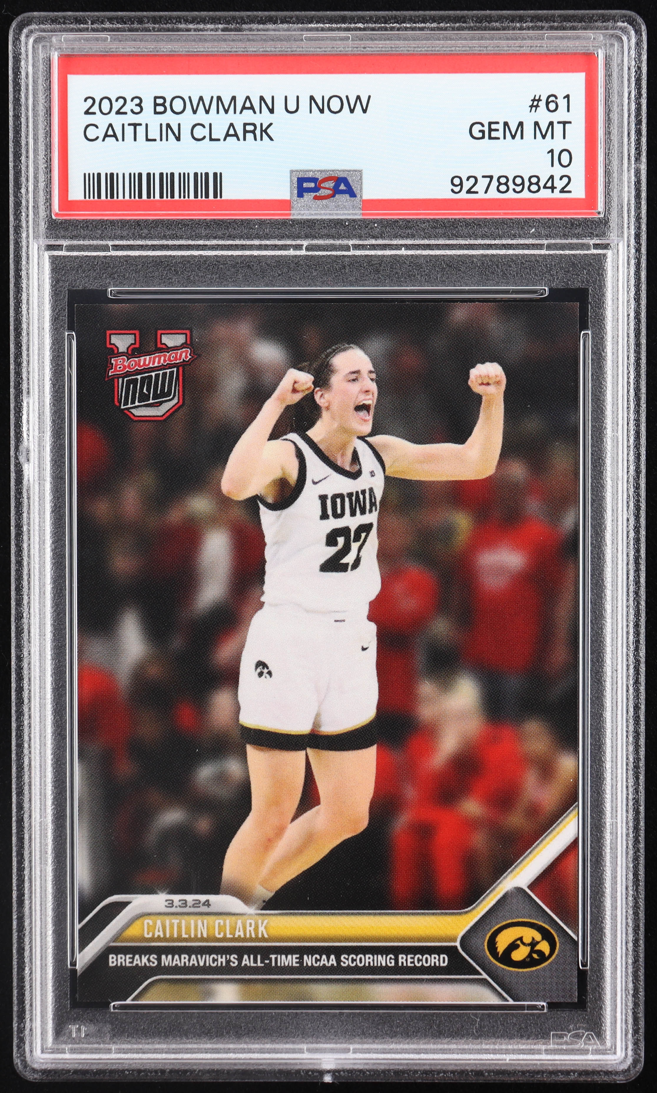 Caitlin Clark 2023-24 Bowman University Now #61 RC (PSA 10)