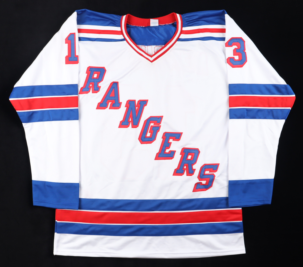 Custom jersey. Everything sewn on, size XL. Hand-signed and inscribed by Sergei Nemchinov.