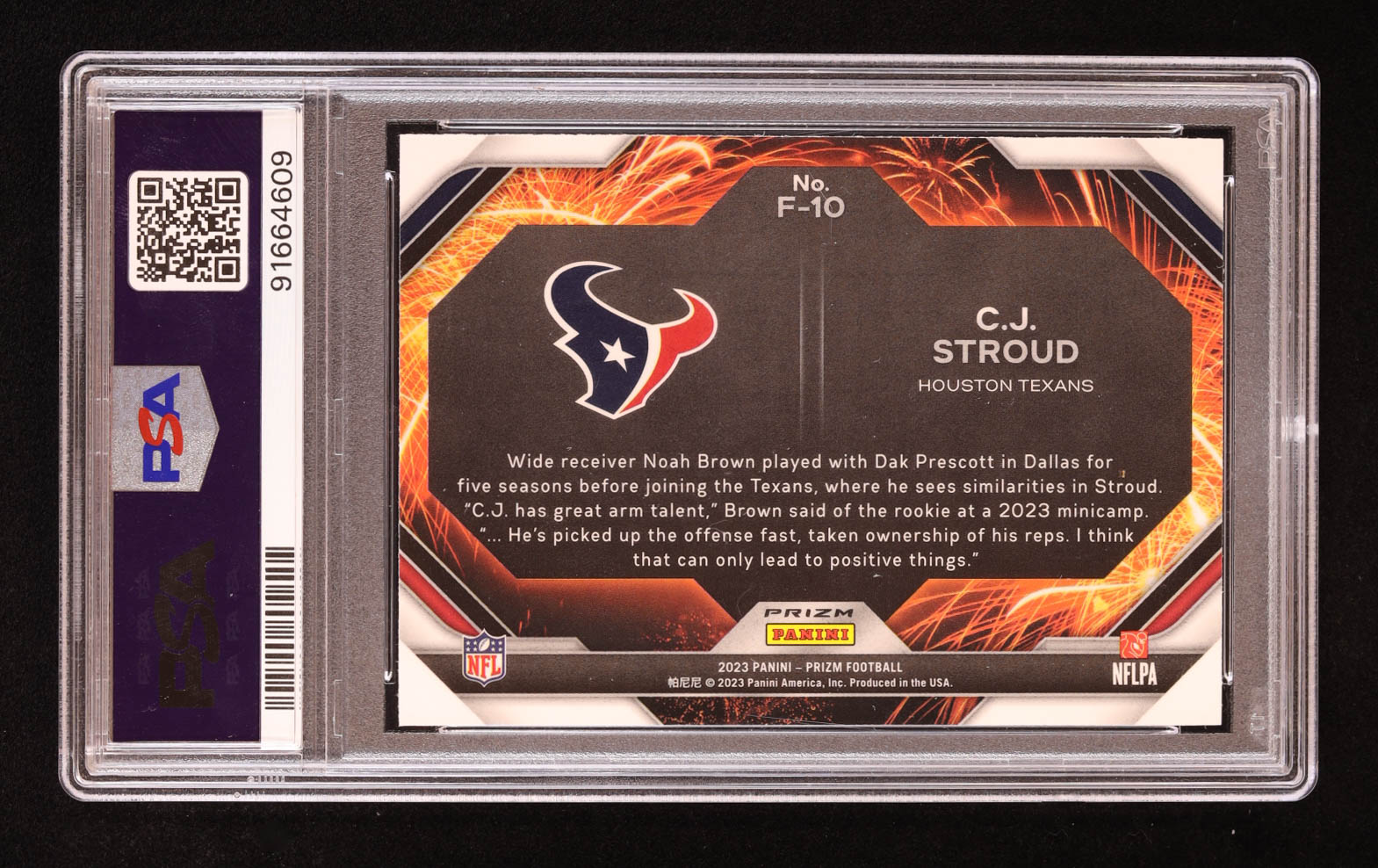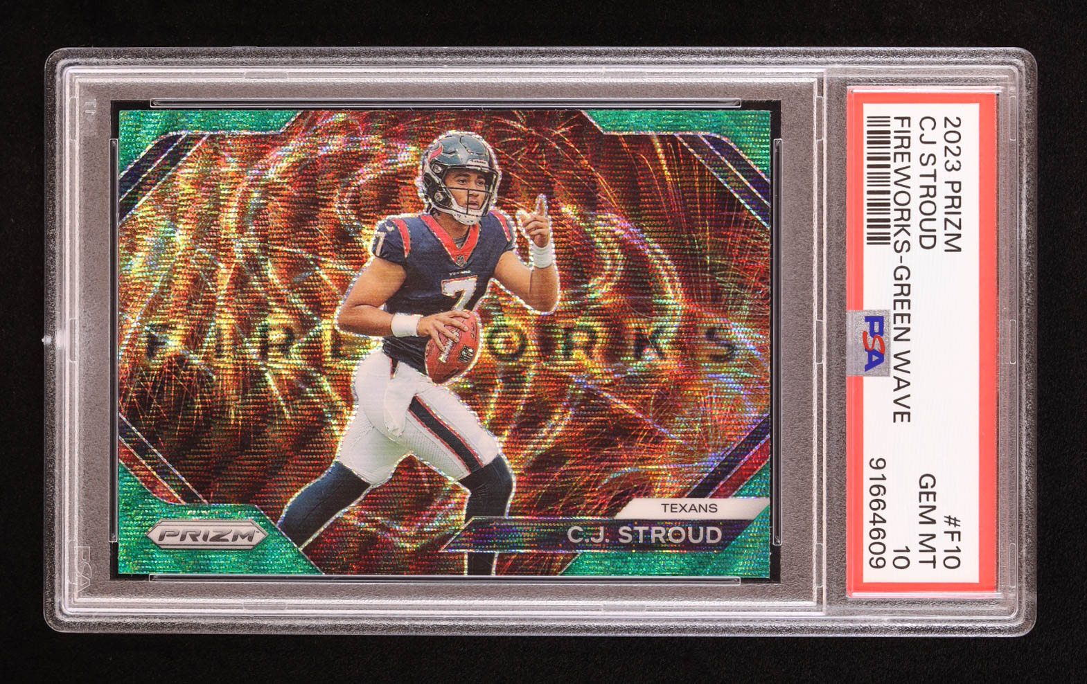 CJ Stroud 2023 Panini Prizm Fireworks Prizms Green Wave #10 RC (PSA 10)