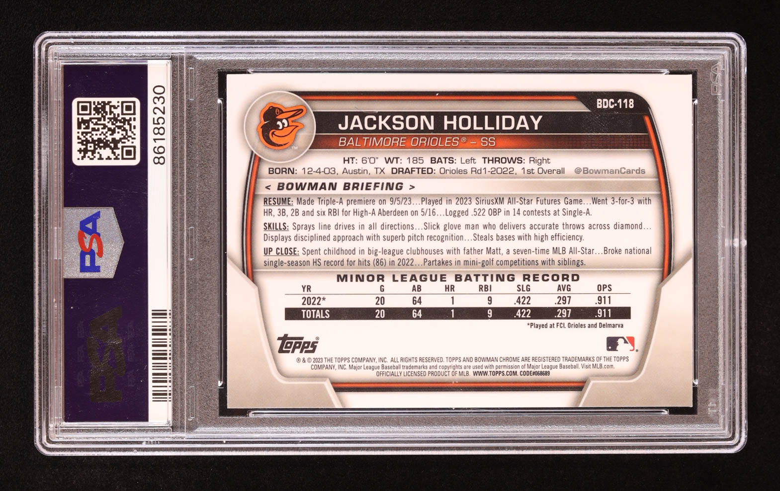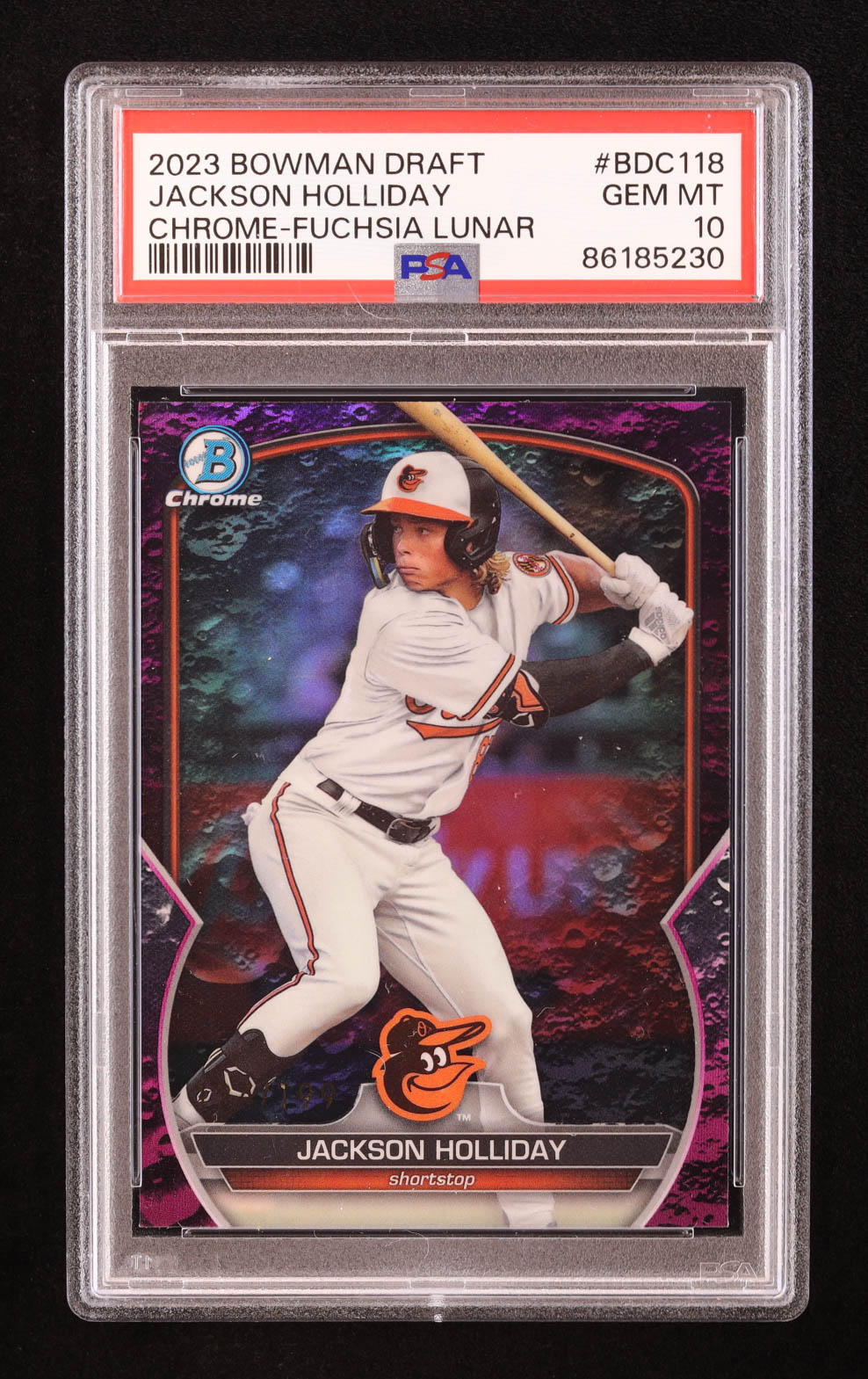 Jackson Holliday 2023 Bowman Chrome Draft Fuschia Lunar Refractors #BDC118 #124/199 RC (PSA 10)