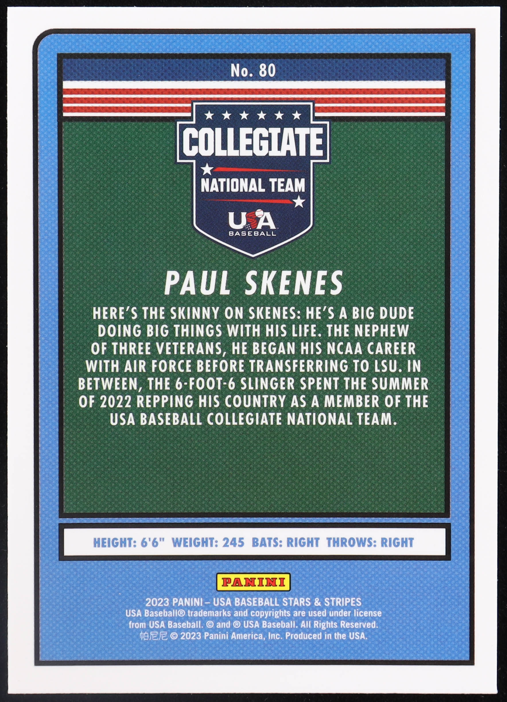 Paul Skenes 2023 USA Baseball Stars and Stripes #80 RC