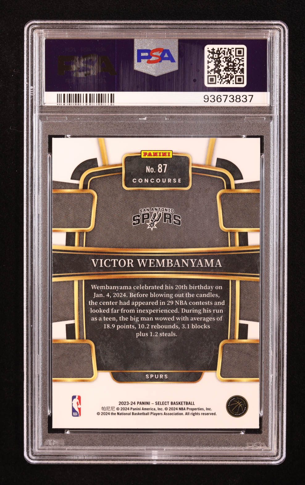 Victor Wembanyama 2023-24 Select Blue #87 RC (PSA 10)