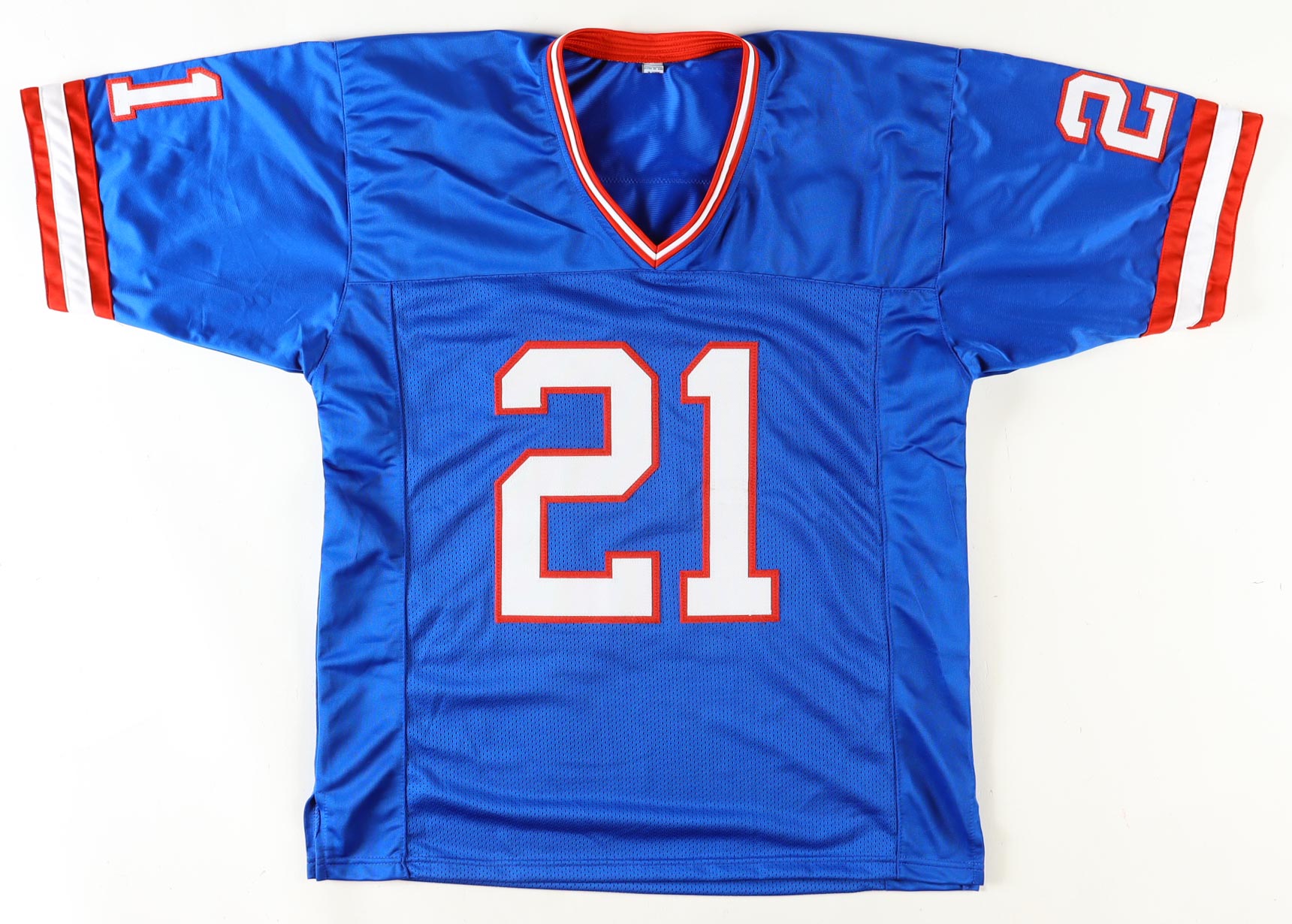 Custom jersey with everything sewn on, size XL. Hand-signed by Tiki Barber.