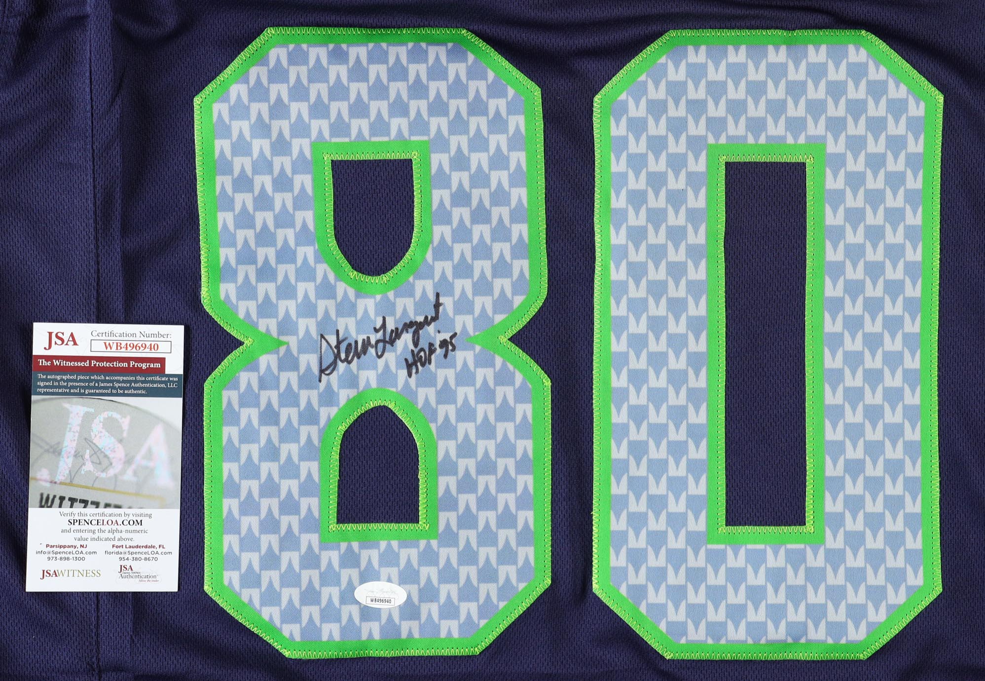 Steve Largent Signed Jersey Inscribed "HOF 95" (JSA)