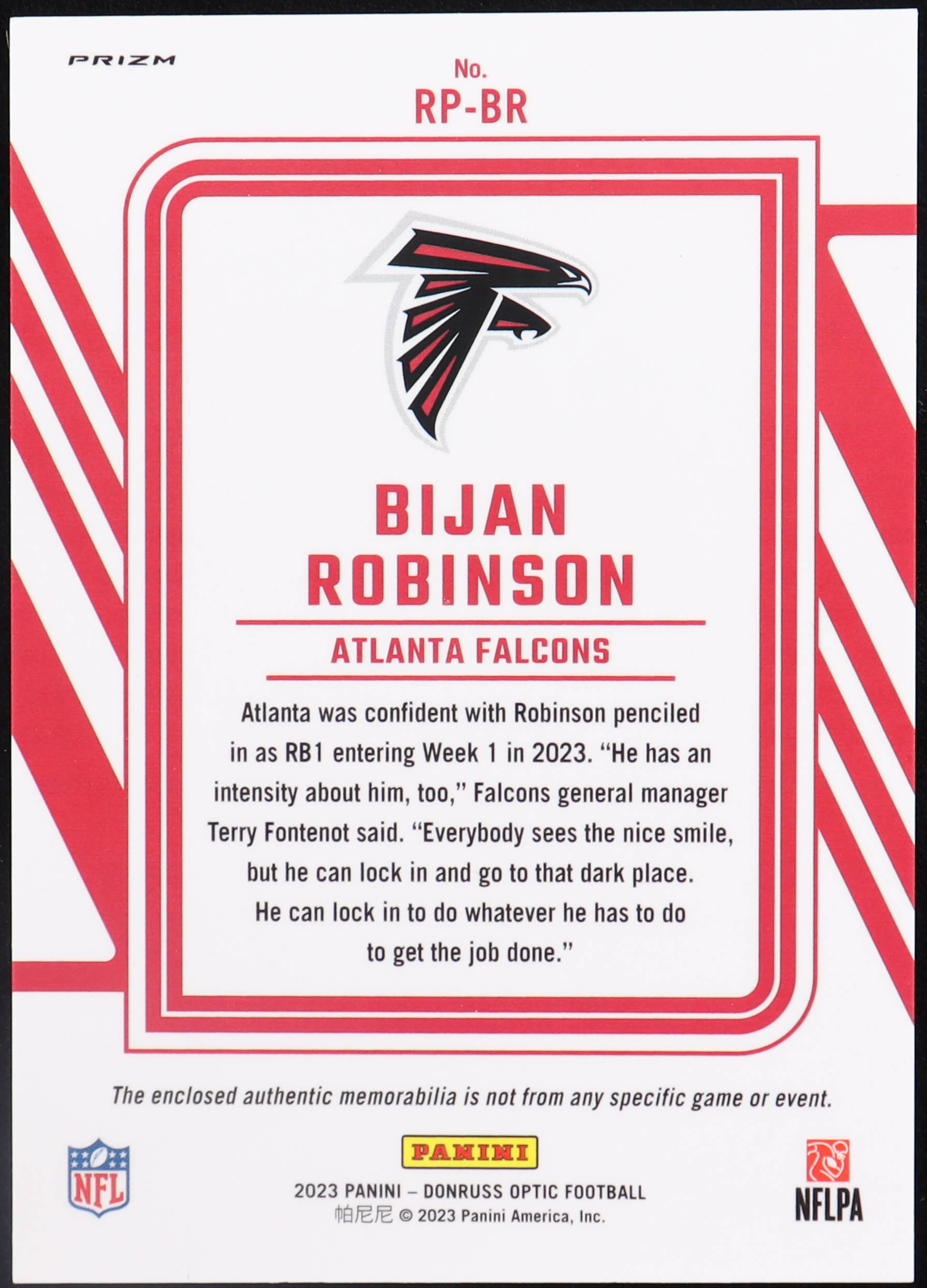 Please see photos for details regarding the condition of the card (Atlanta Falcons).